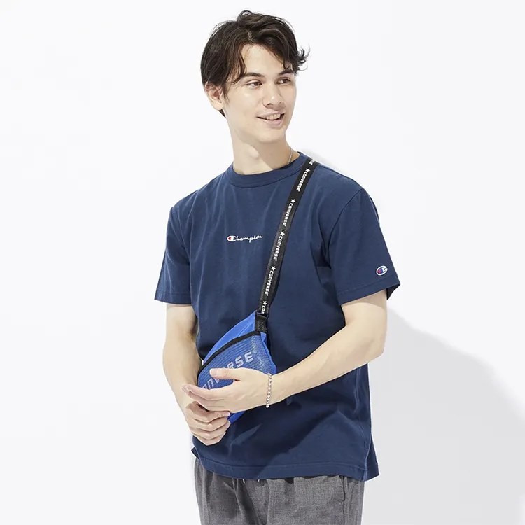 Champion T-рубашка с рукавом с оборванным плечом унисекс темно-синий японская версия