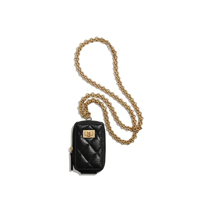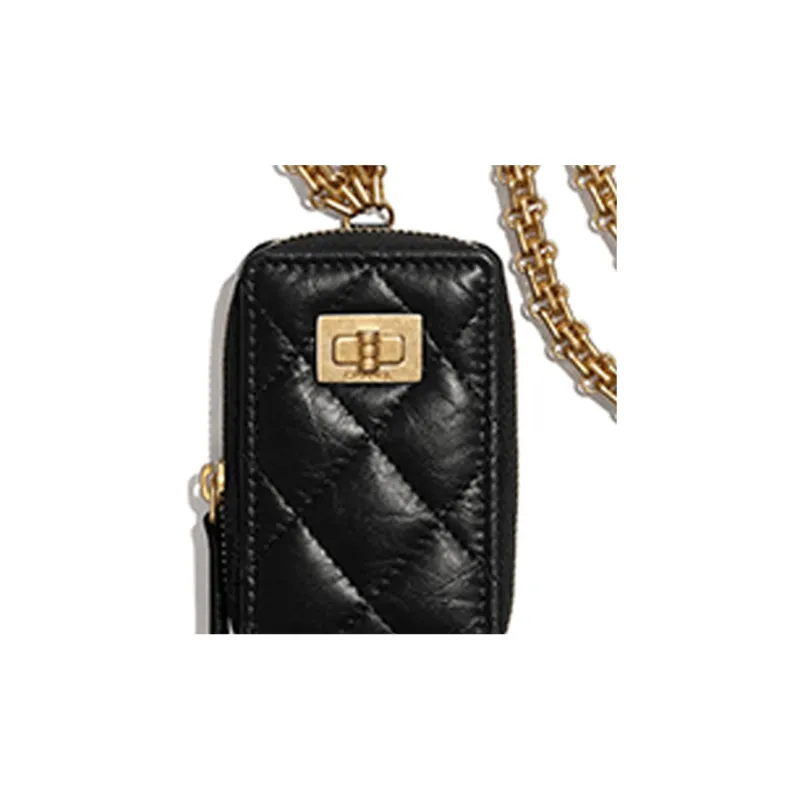 CHANEL 2,55 Коровья кожа Слоган Сумка Ожерелье Сумочка для украшений Унисекс Черный
