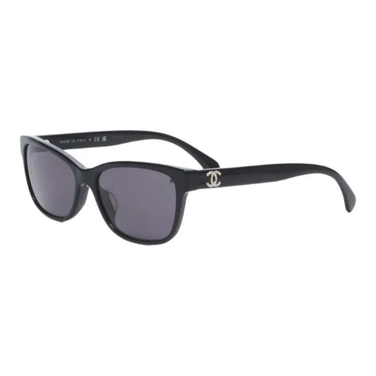 CHANEL Пластик Квадратные Солнцезащитные очки Женские Черные