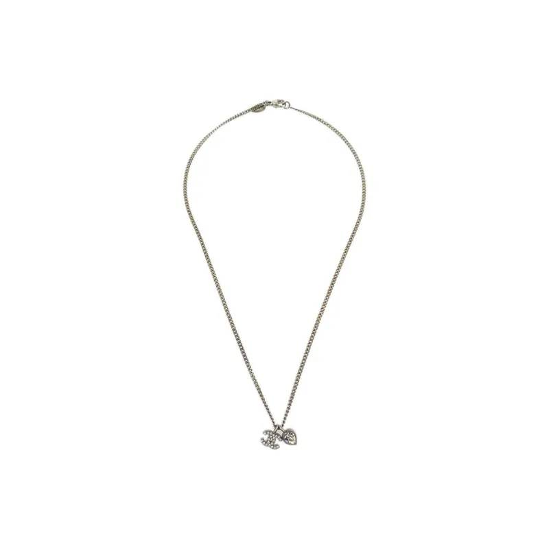 CHANEL CC Серебряный Покрытый Стразы Ожерелья Женское Серебряное