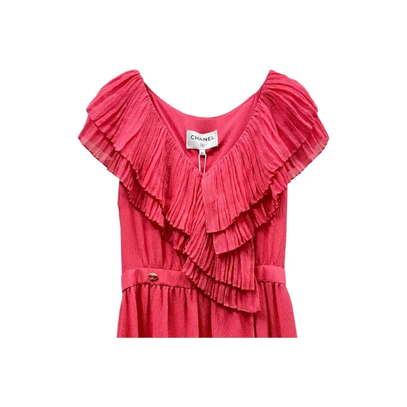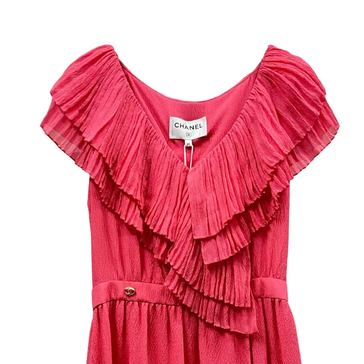 CHANEL 21C Короткое платье с короткими рукавами женское красное