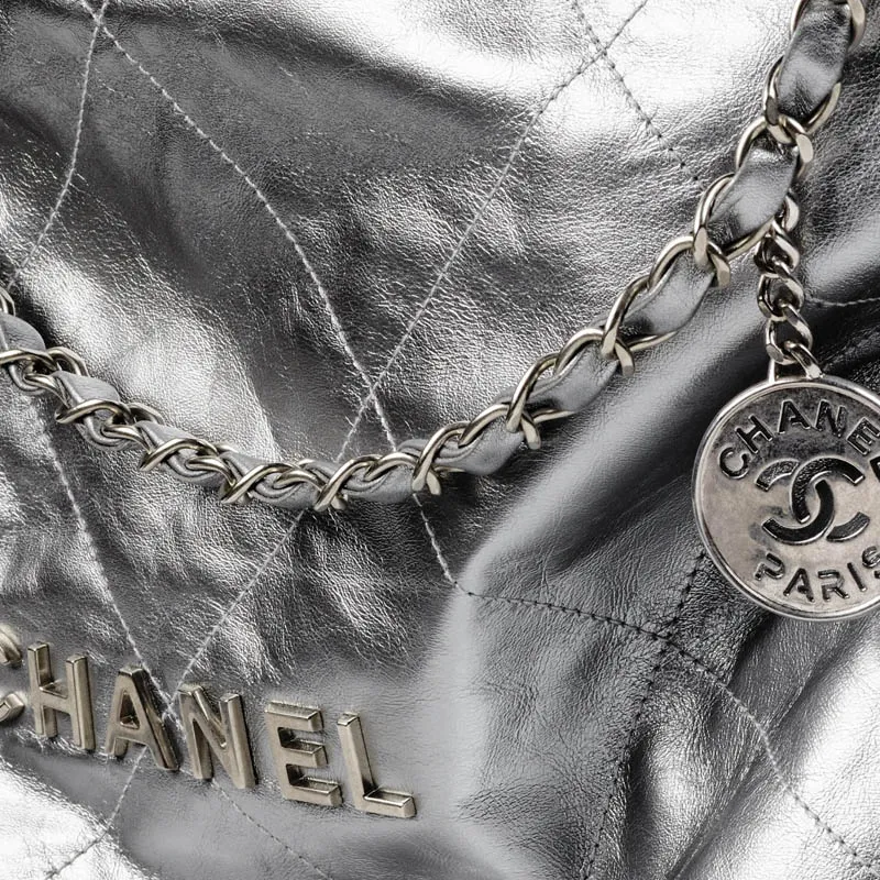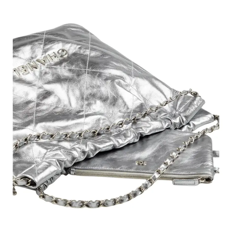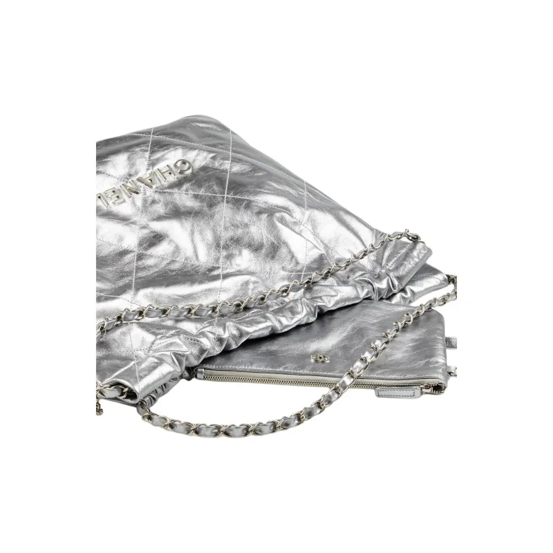 CHANEL 22Bag Коровья кожа And Серебряный металл Сумка Женская серебряная
