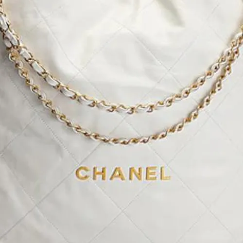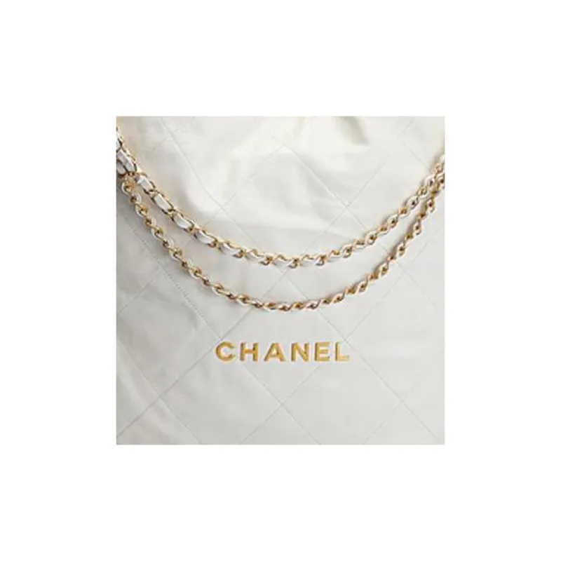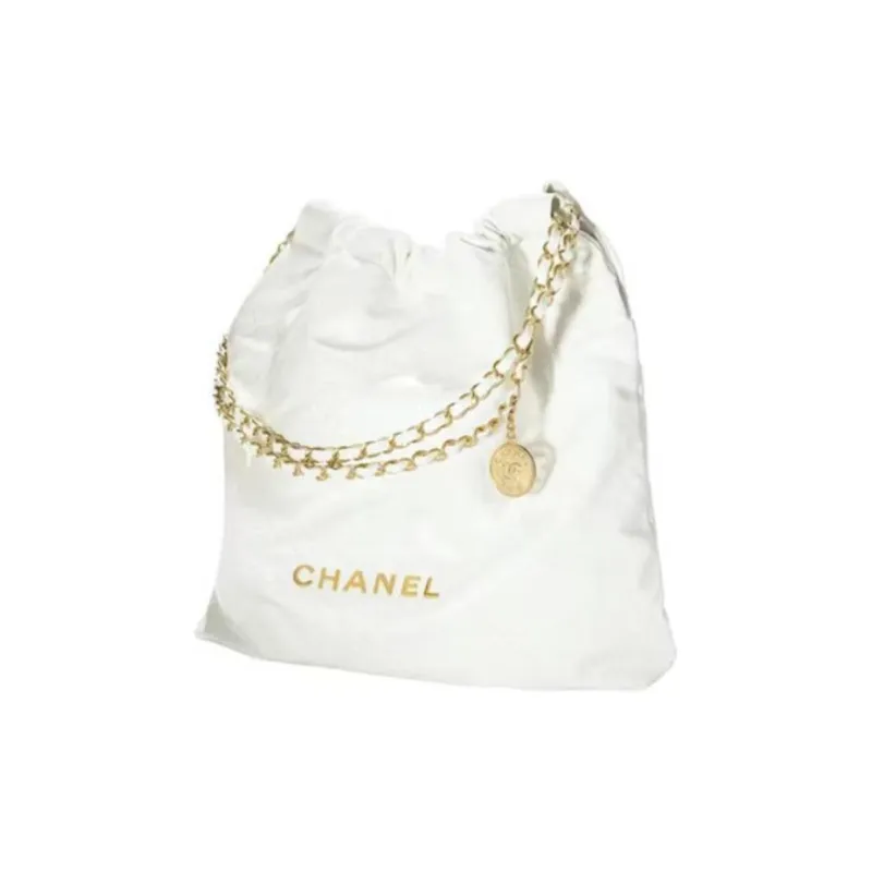 CHANEL 22Bag Блестящий Телячья кожа Тоут Сумка Сумка для покупок Сумка Сумка через плечо Большая Женская Белая