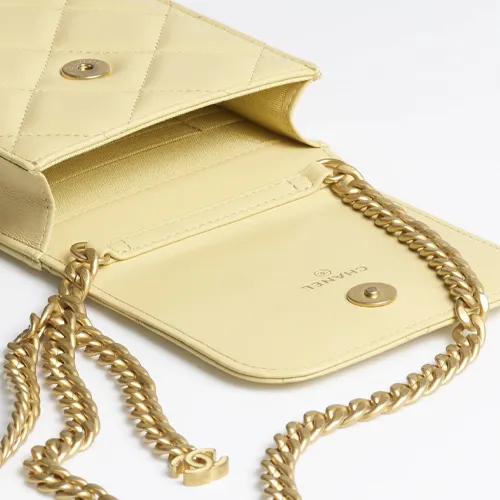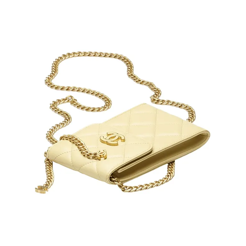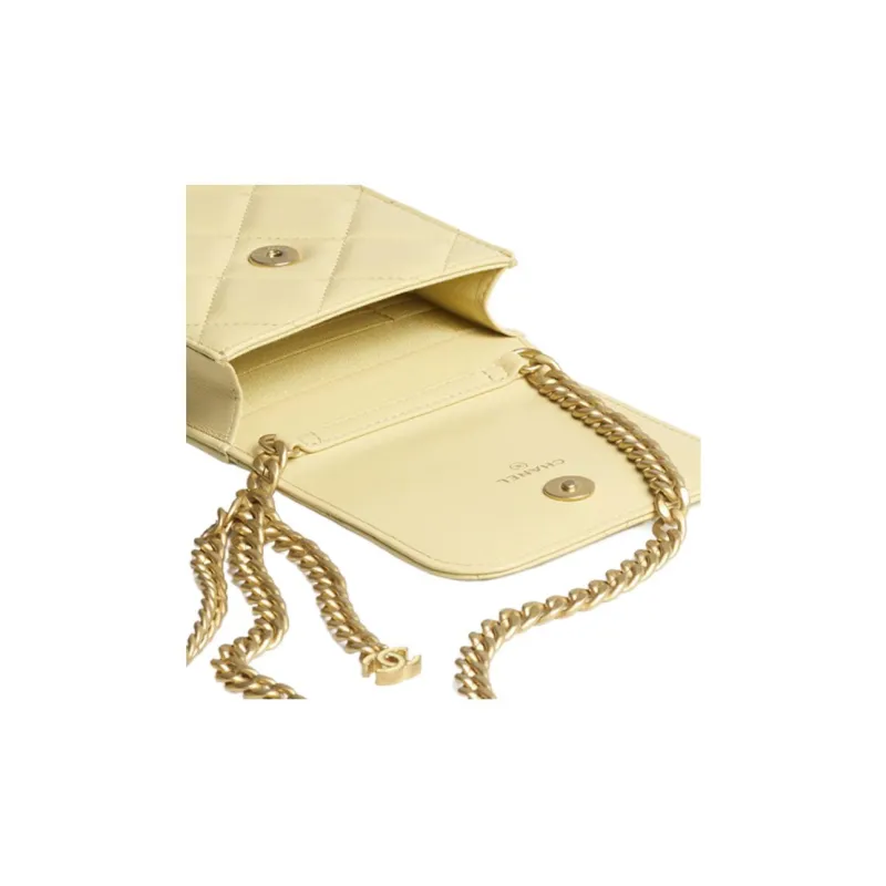 CHANEL 22P Sheepskin Phone Case Chain Women's Light Yellow