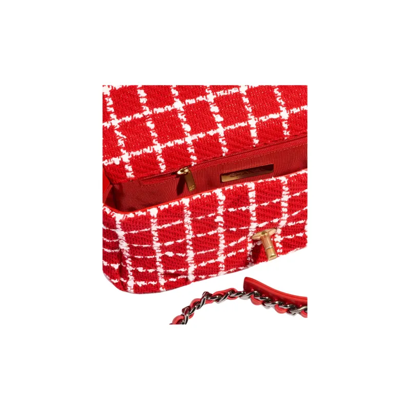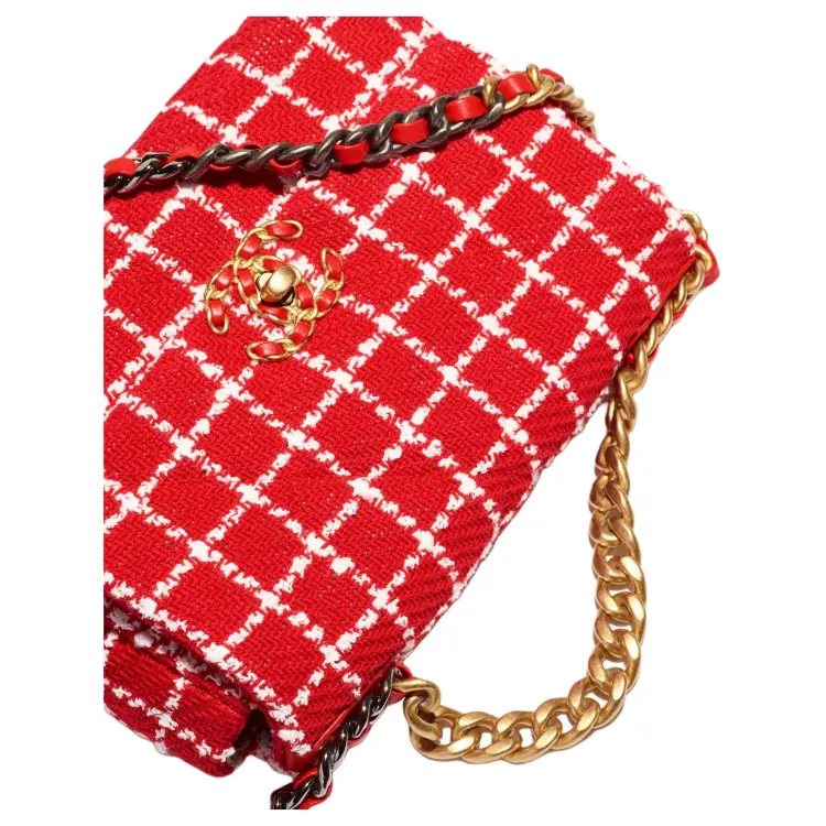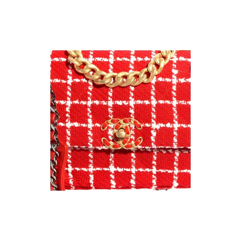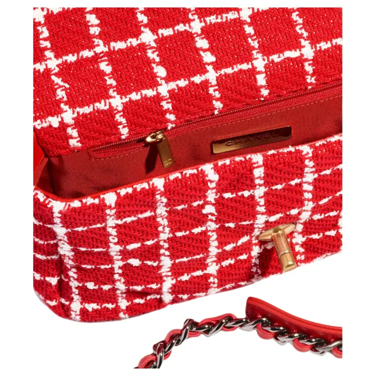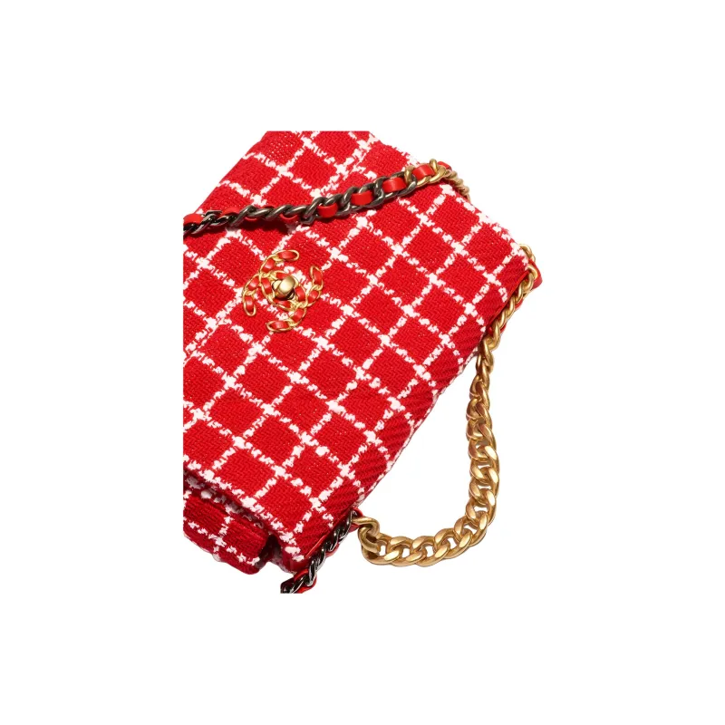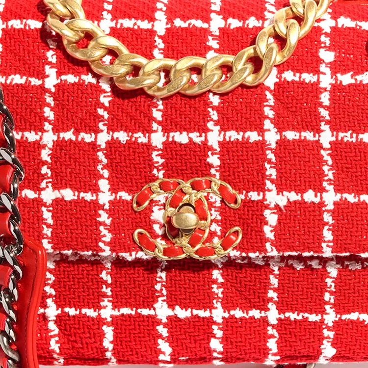 CHANEL 23C Spring 19 Bag Хлопок Твид Сумка Сумка через плечо Сумка через плечо Женская Красная Белая
