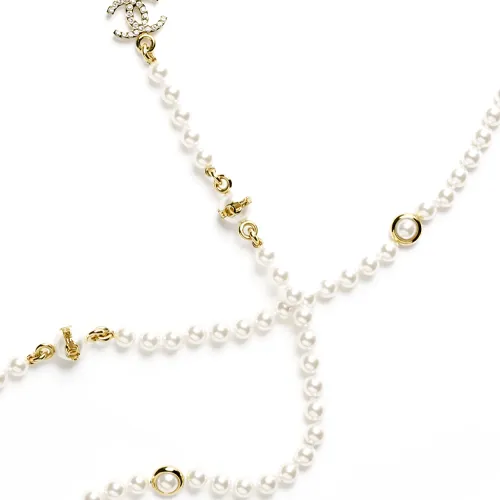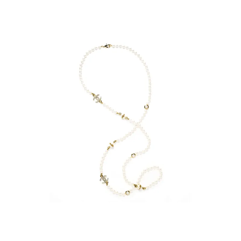 CHANEL 23k Металл Глазурованный жемчуг Искусственный жемчуг Стразы Crystal Necklaces Женские Белые