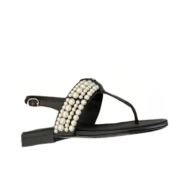 CHANEL 23P SS One Ремень Сандалии Женские Черный