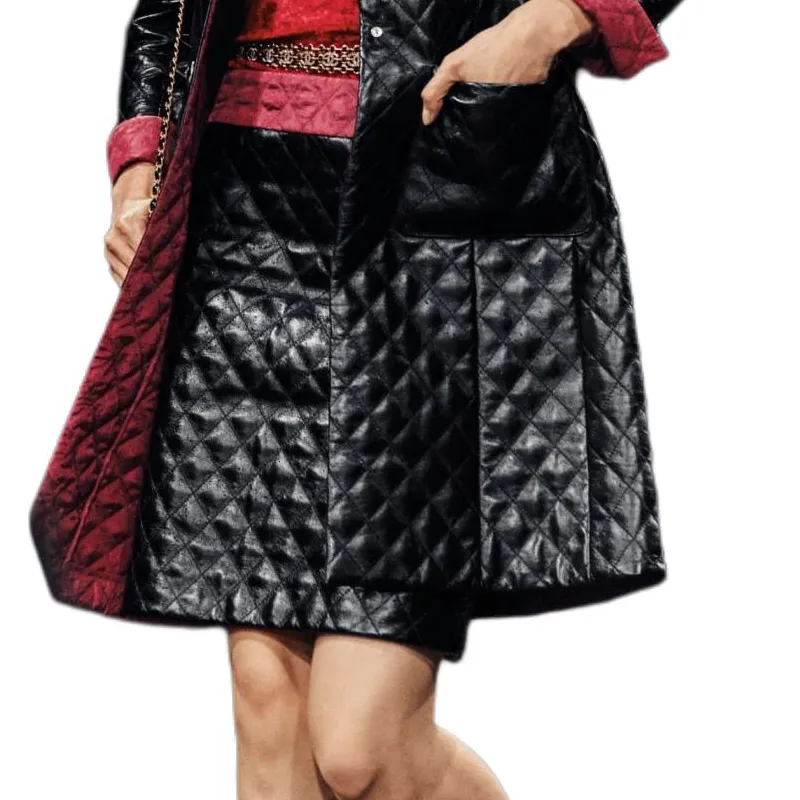 CHANEL 24 Осенний Зимний Новый Приход Кожаные Короткие Юбки Женские Черный Красный