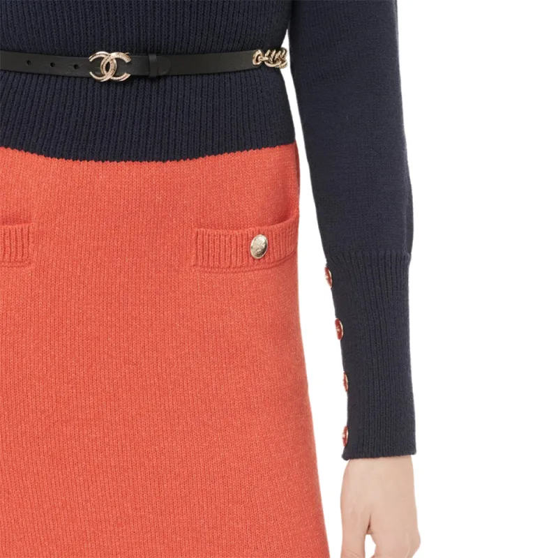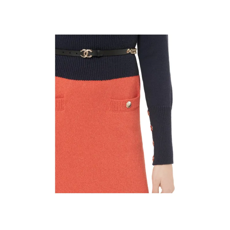 CHANEL 24 Осенний Зимний Новый Приход Длинный Рукав Платье Женское Синий Оранжевый