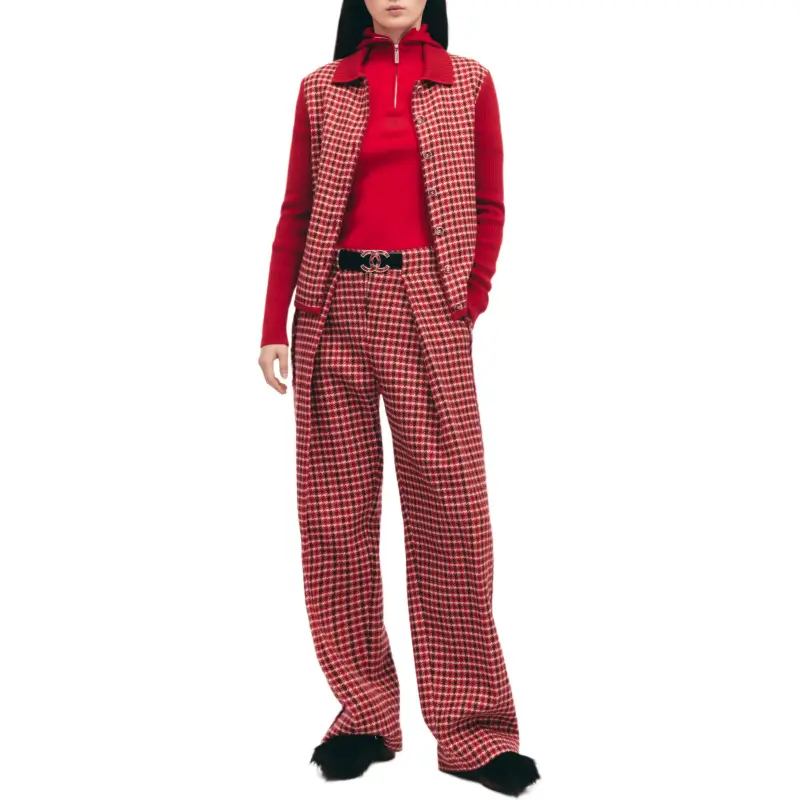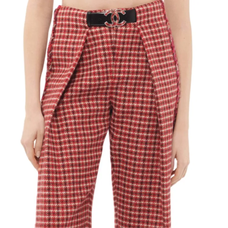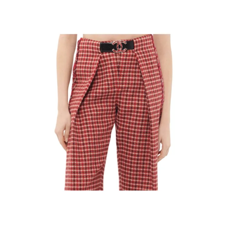 CHANEL 24N Neige Коллекция для лыжного спорта Повседневные брюки Женские Красная клетка