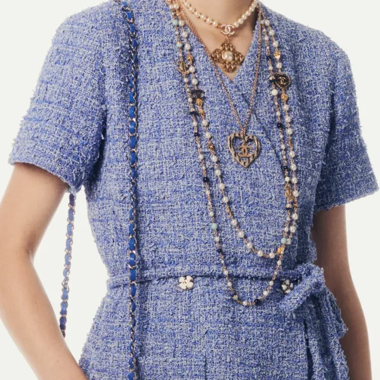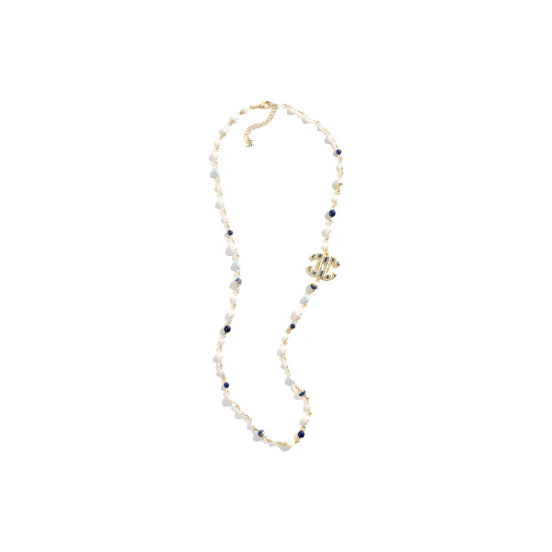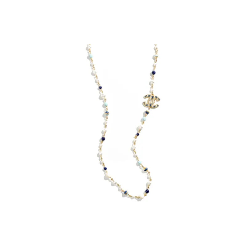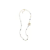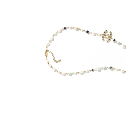 CHANEL 24P Металл Искусственный жемчуг Ожерелья Женские Золото