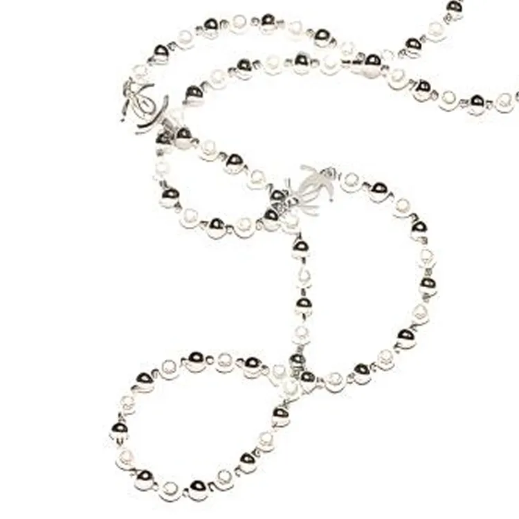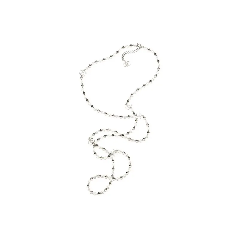 CHANEL 25C Металл Искусственный жемчуг Ожерелья Женские Белый Серебряный