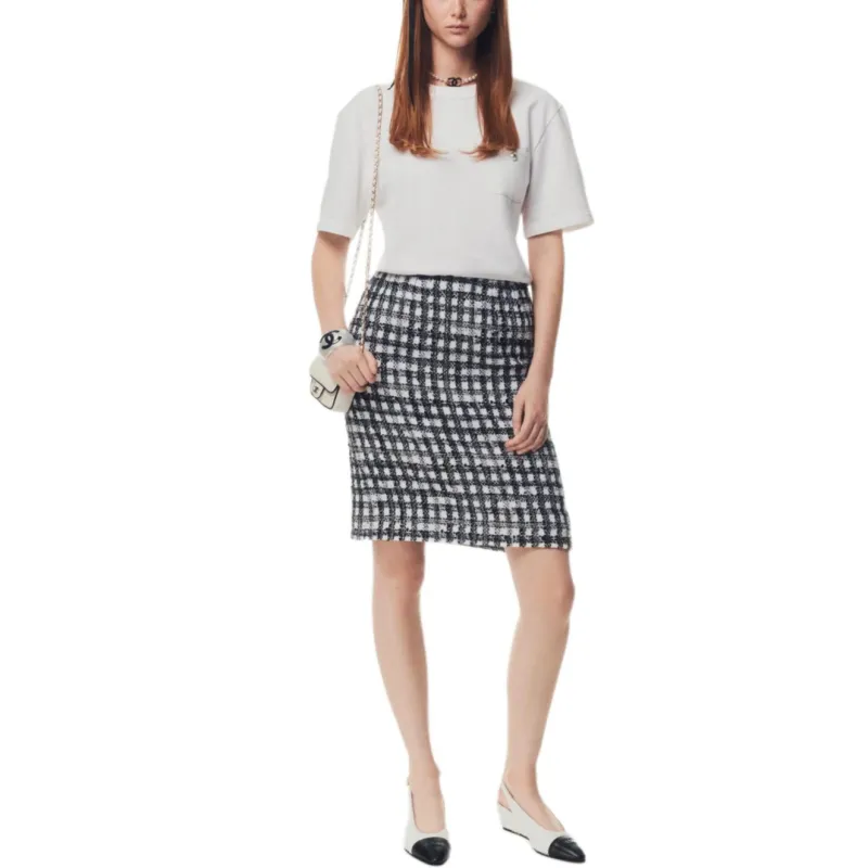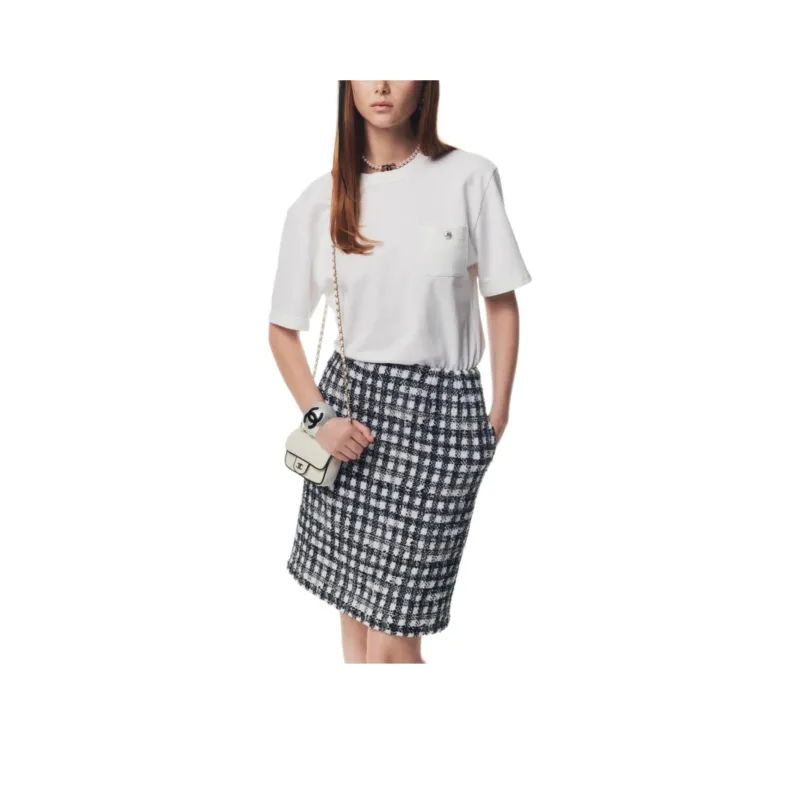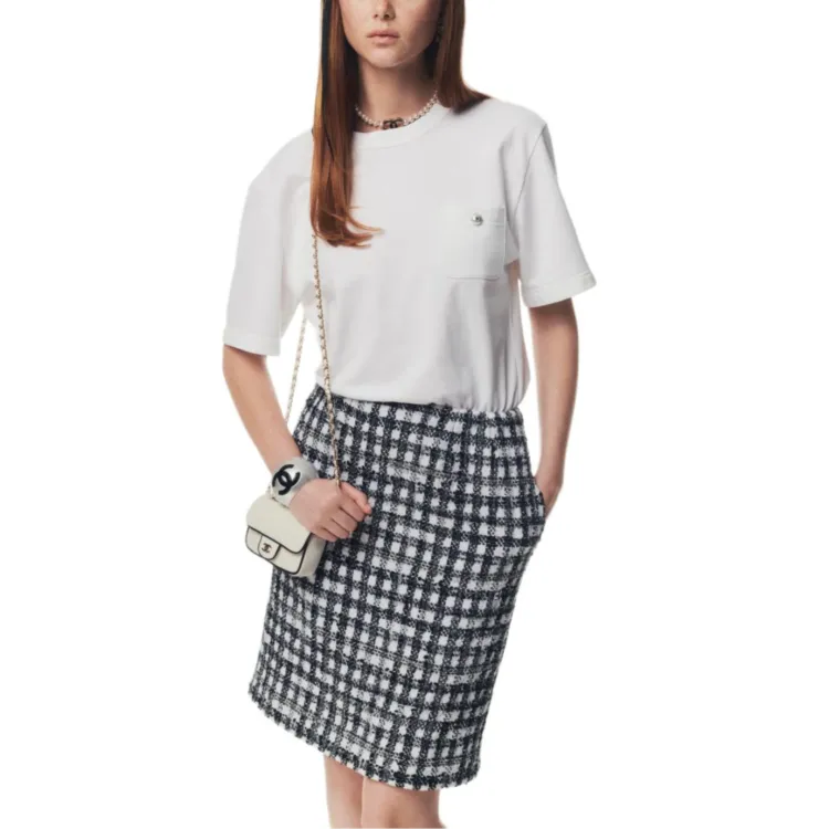 CHANEL 25P Короткое платье с короткими рукавами женское черное и белое