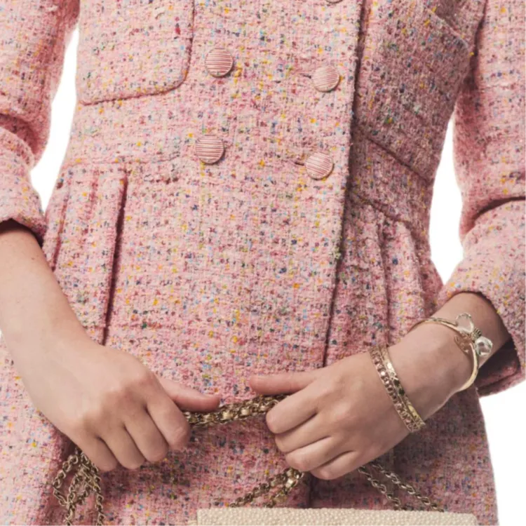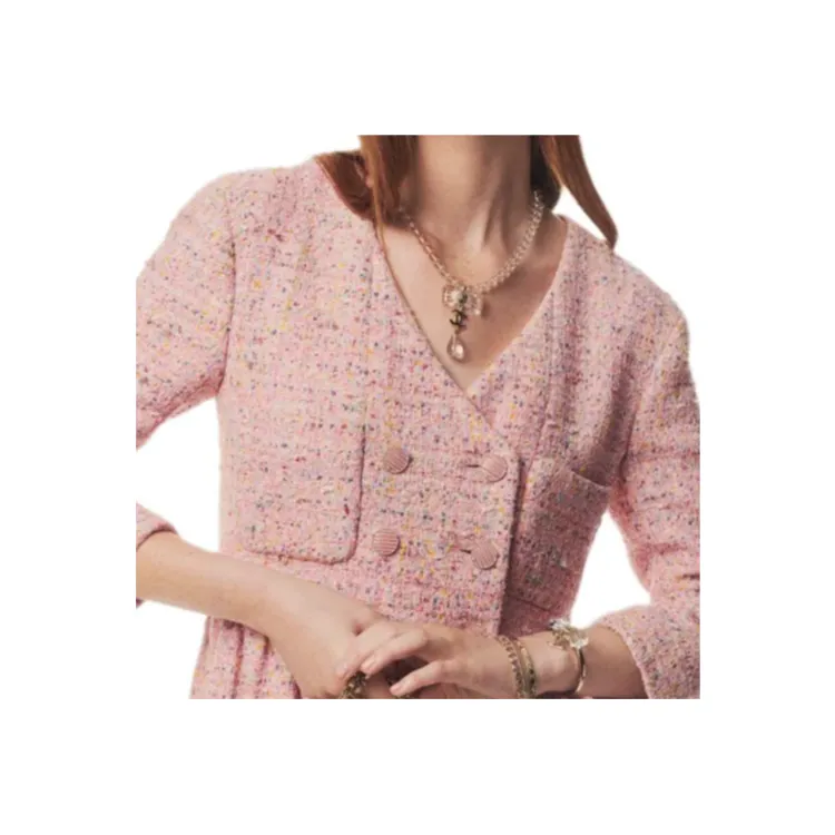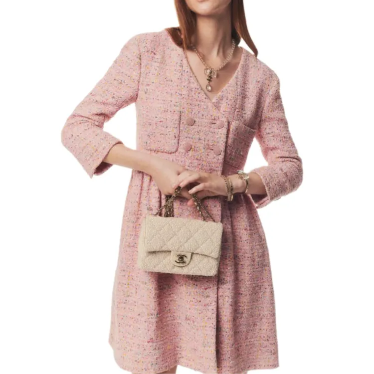 CHANEL 25P Spring Summer Preview Коллекция Длинное Платье с Длинными Рукавами Женское Розовое
