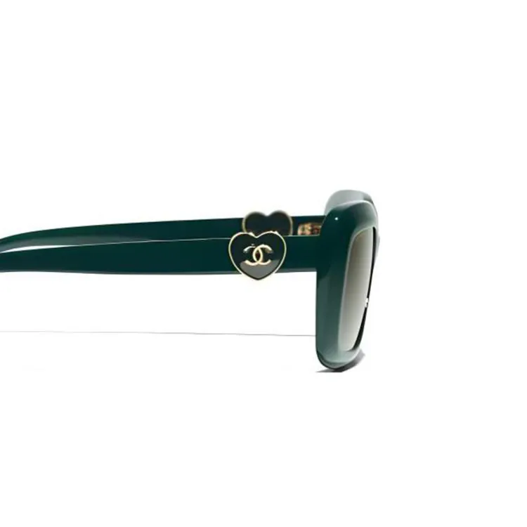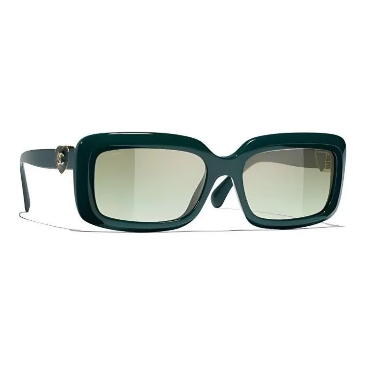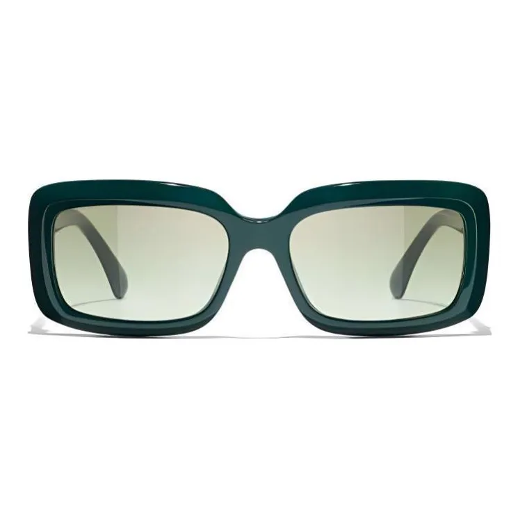 CHANEL Ацетат Прямоугольные Солнцезащитные очки Унисекс Зеленый