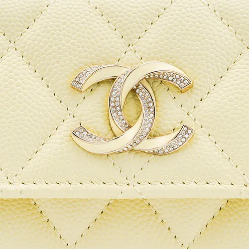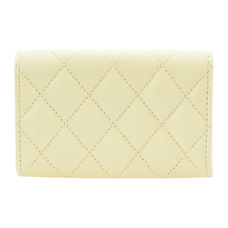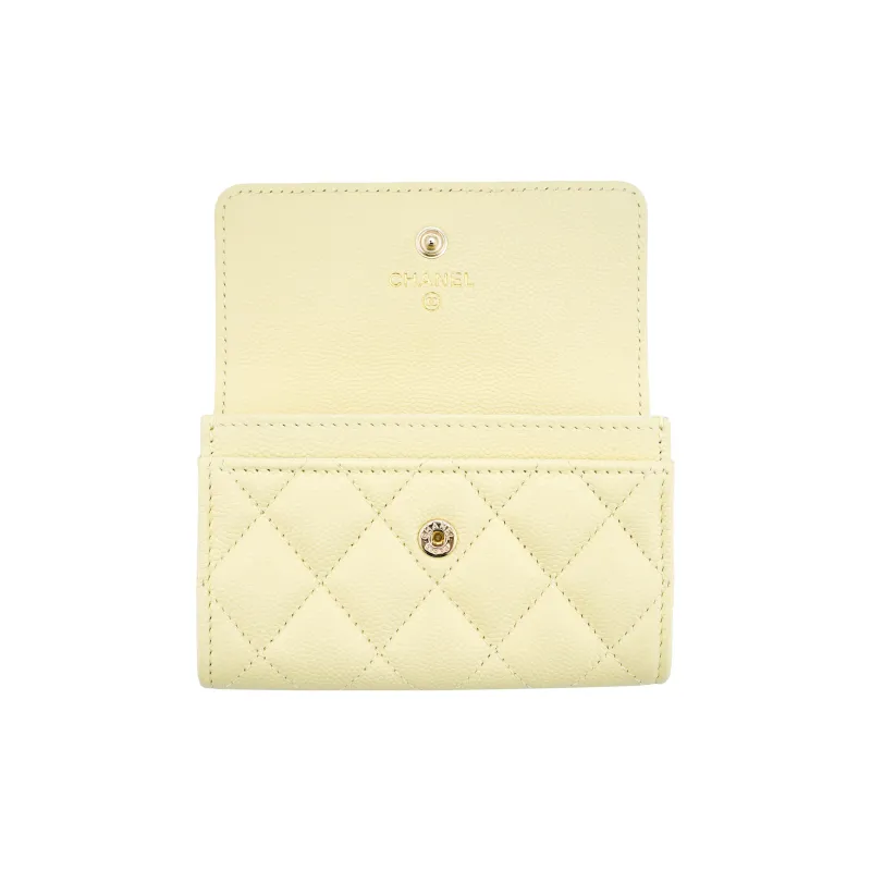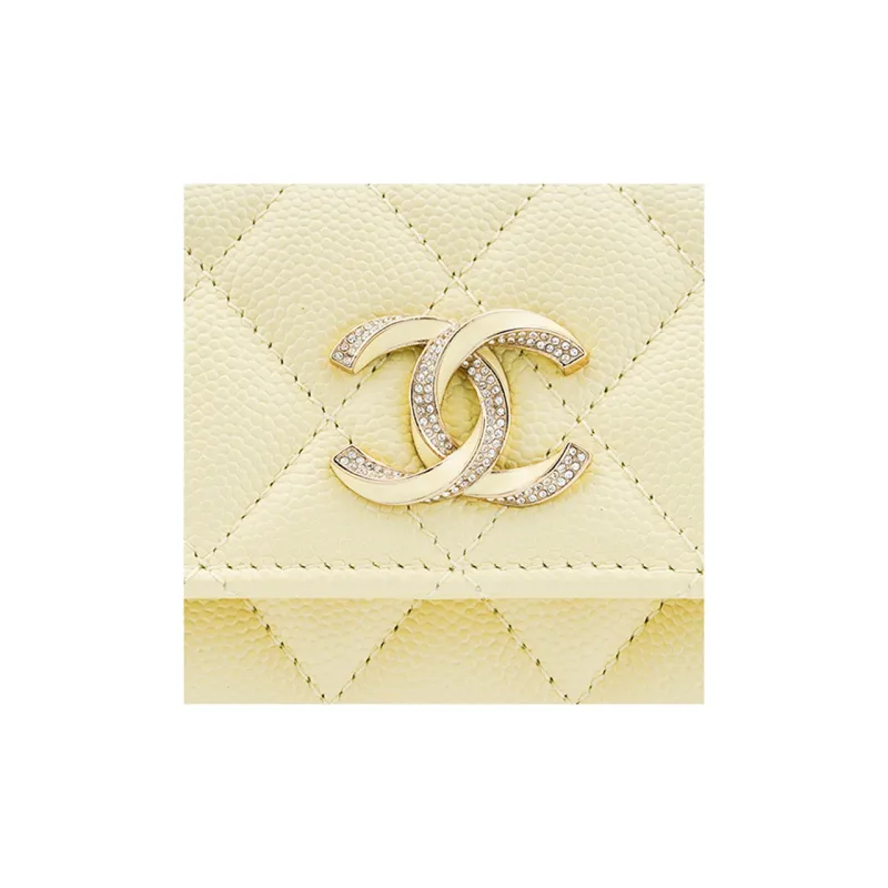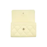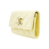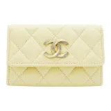 CHANEL Яркий с рельефом зернистая кожа личи коровья кожа кошелек держатель для карт женский светло-желтый
