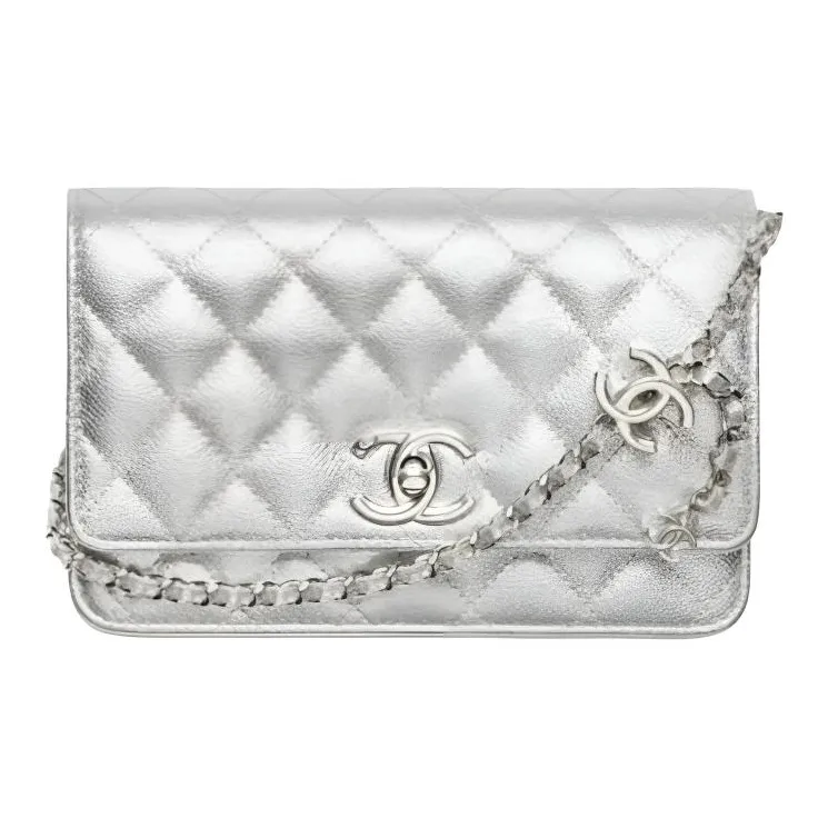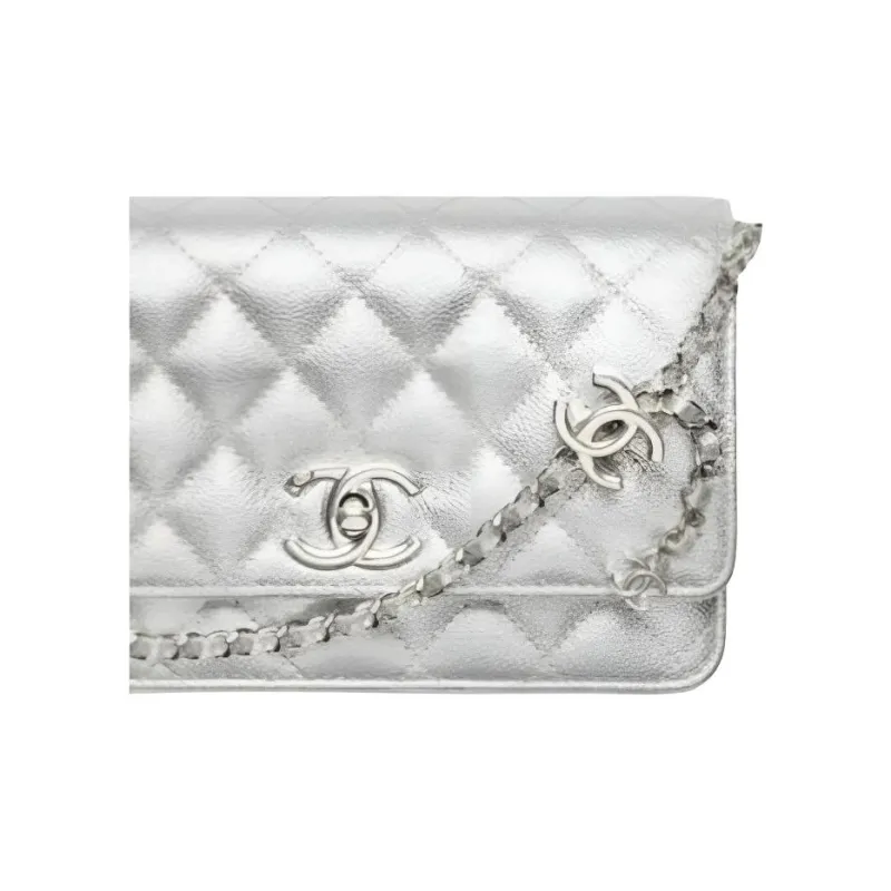 CHANEL Сумка через плечо из телячьей кожи женская серебряного цвета