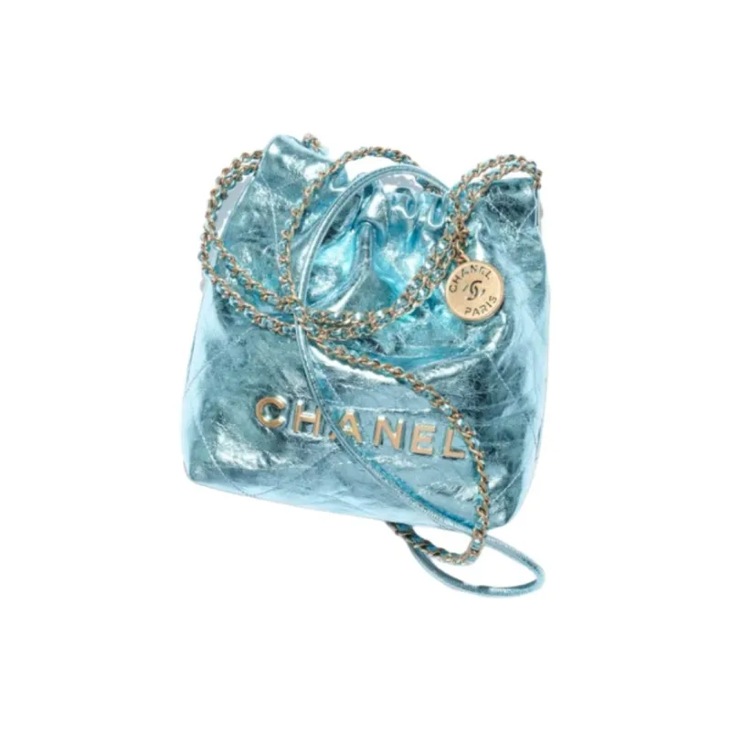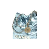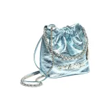 CHANEL Телячья кожа Сумка-хобо Сумка через плечо Мини Женская Светло-синяя