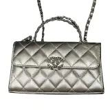 CHANEL Телячья кожа Сумка через плечо Сумка Women's Silver