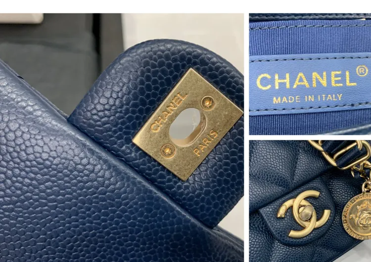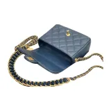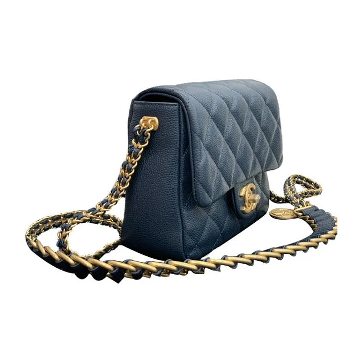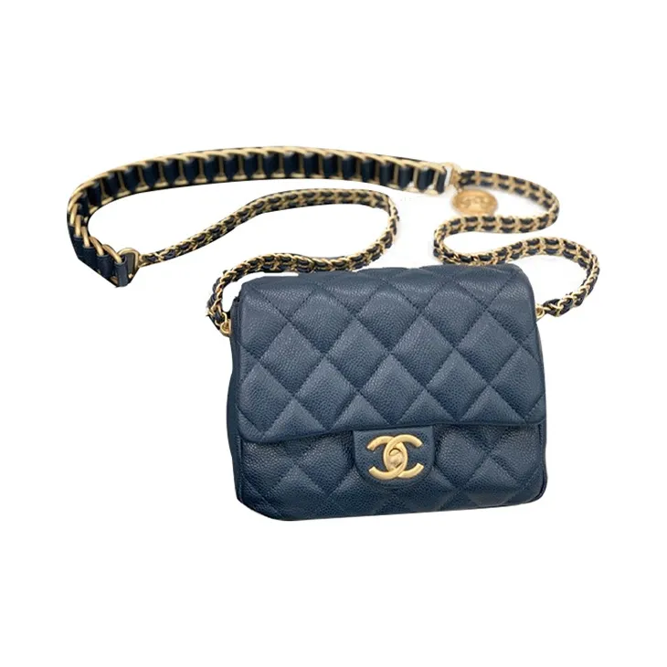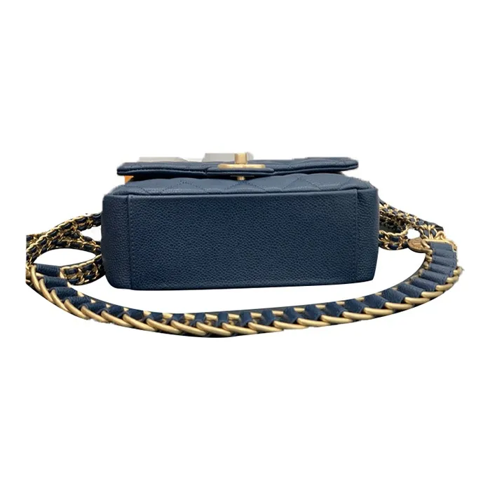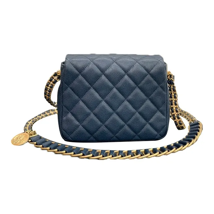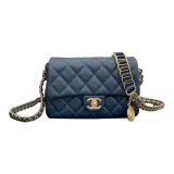 CHANEL Classic Flap CF Coin Collection С рельефом Тисненый Телячья кожа Сумка через плечо Маленькая Женская Морской синий