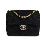 CHANEL Classic Flap CF Радужная Твил Мягкая Шерстяная Сумка через плечо Сумка Мини Женская Черная