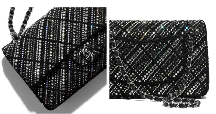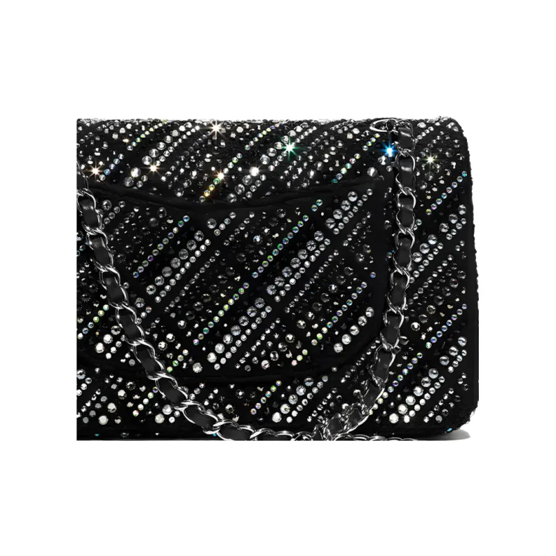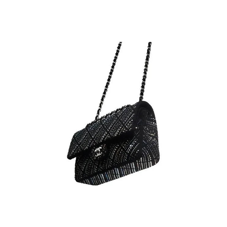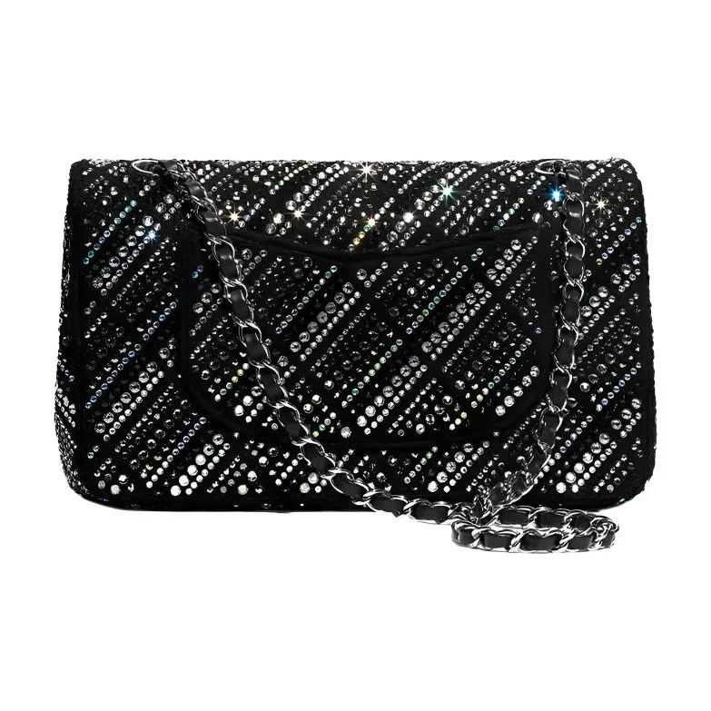 CHANEL Classic Flap CF Twill Soft Nappa Crystal Crossbody Mini Women's Black
