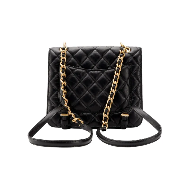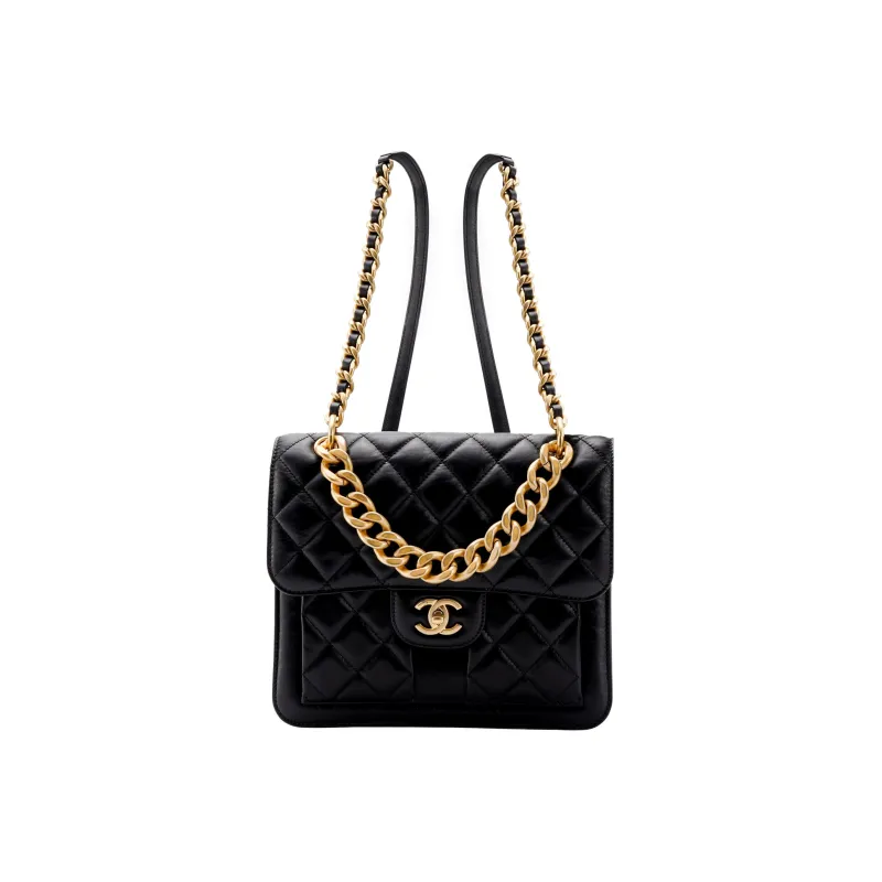 CHANEL Рюкзак из коровьей кожи с откидной крышкой женский черный
