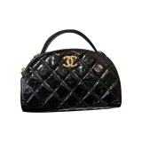 CHANEL Коровья кожа Материал Золото Металл Боулинг Сумка Портативная Сумка через плечо Сумка через плечо Женская Черная