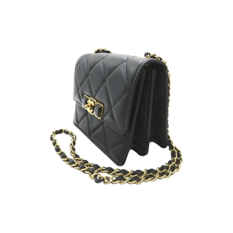 CHANEL Коровья кожа Mouth COVER Сумка Сумки через плечо Мини Женская Черная