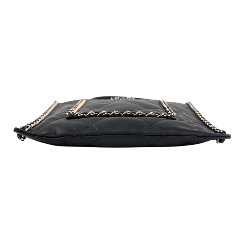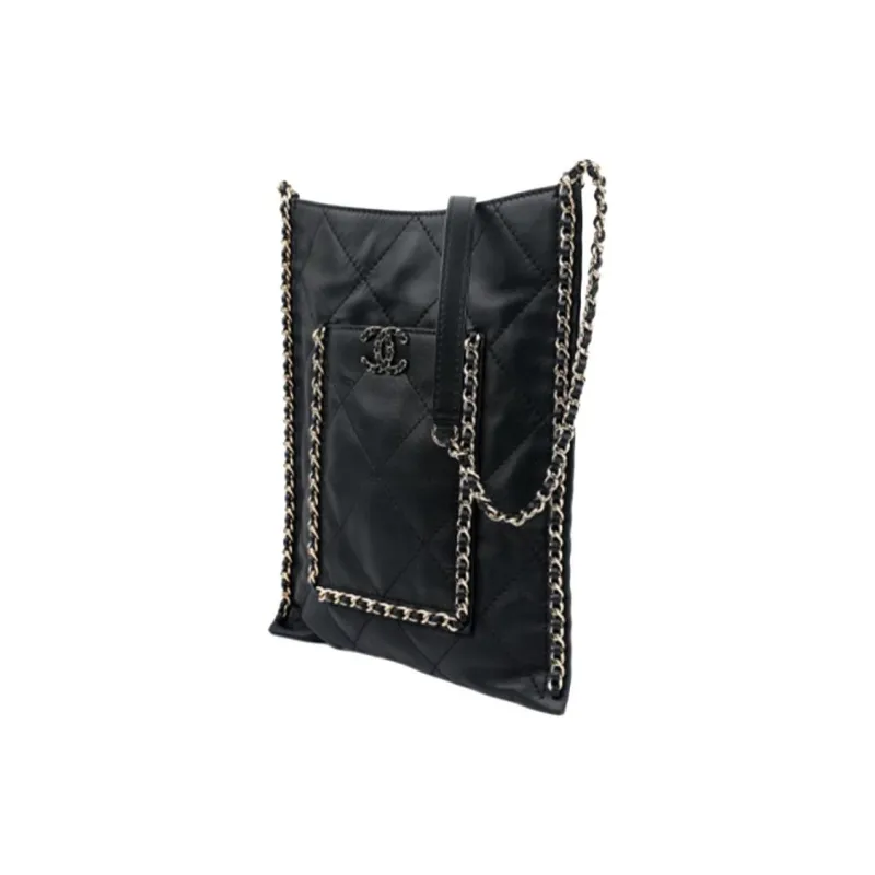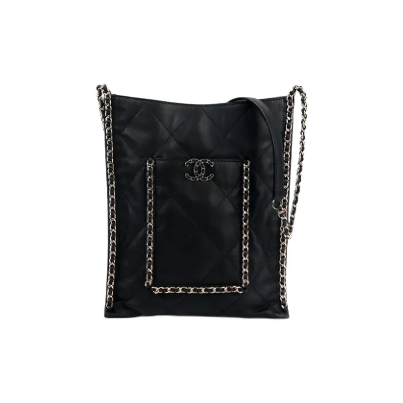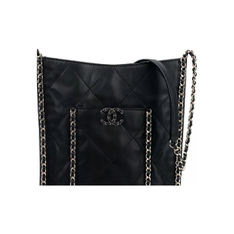 CHANEL Сумка из коровьей кожи Сумка для покупок Сумка-тоут Сумка-хиппи Сумка через плечо Маленькая женская Черная