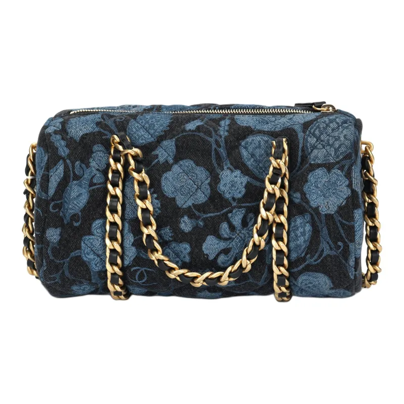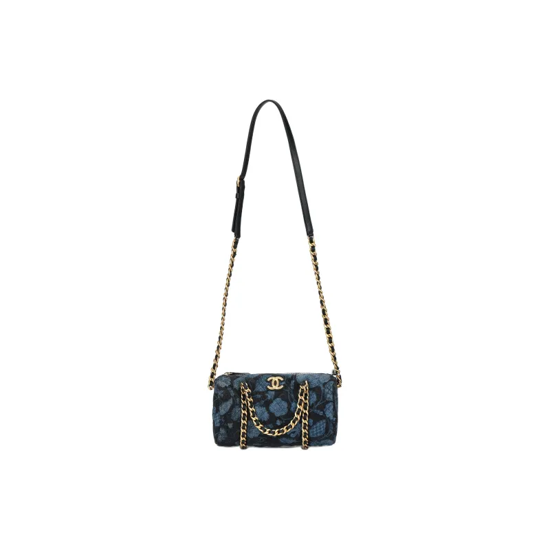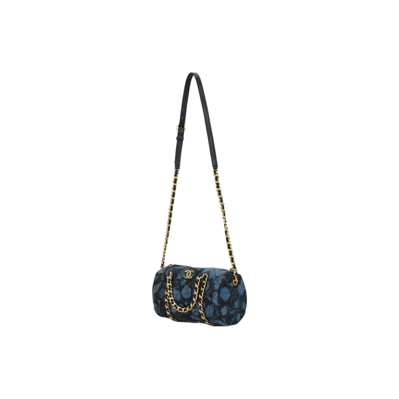 CHANEL Деним Bowling Bag Сумка через плечо Сумка для женщин Угольный черный и синий