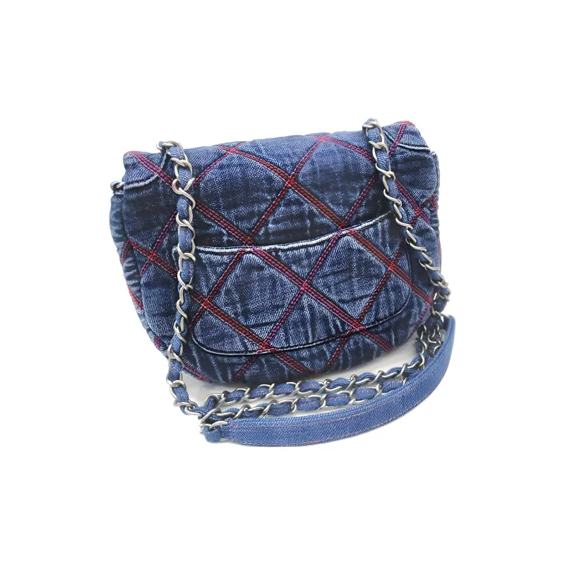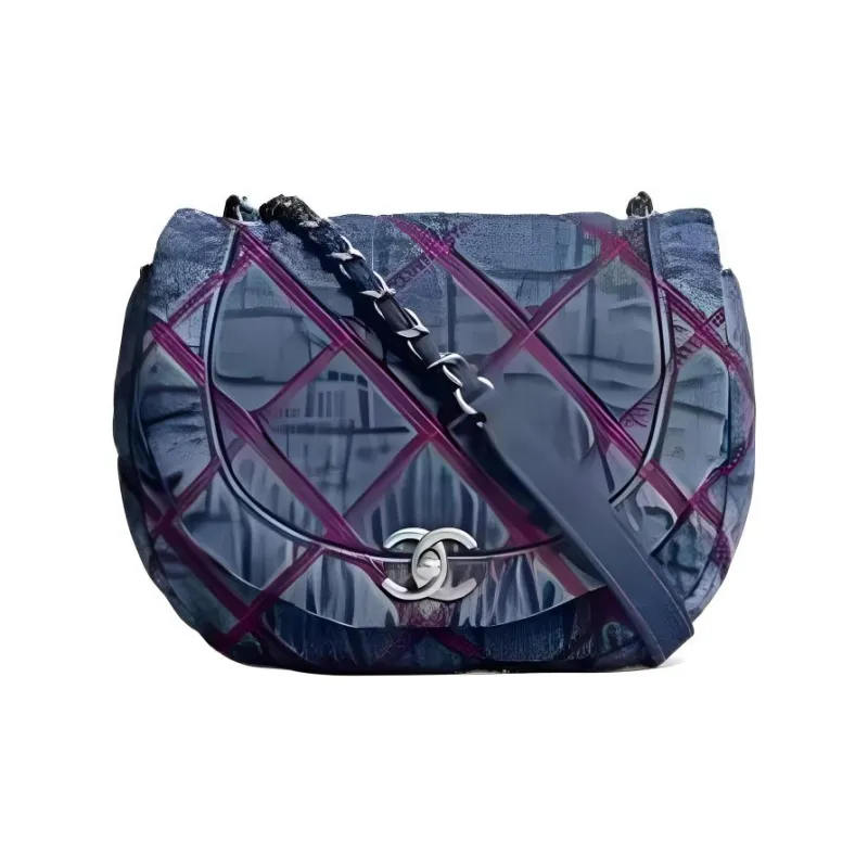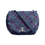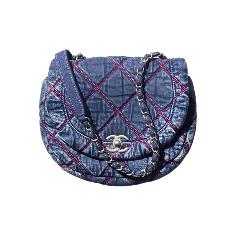 CHANEL Деним Вышивка Круглая Сумка через плечо Женская Вода Основанная Джинсовый синий