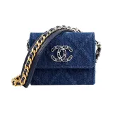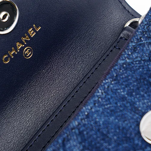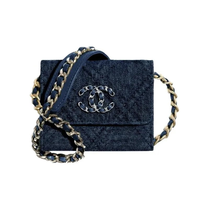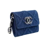 CHANEL Деним Ткань Монетница Сумка через плечо Сумка на плечо Унисекс Темно-синий