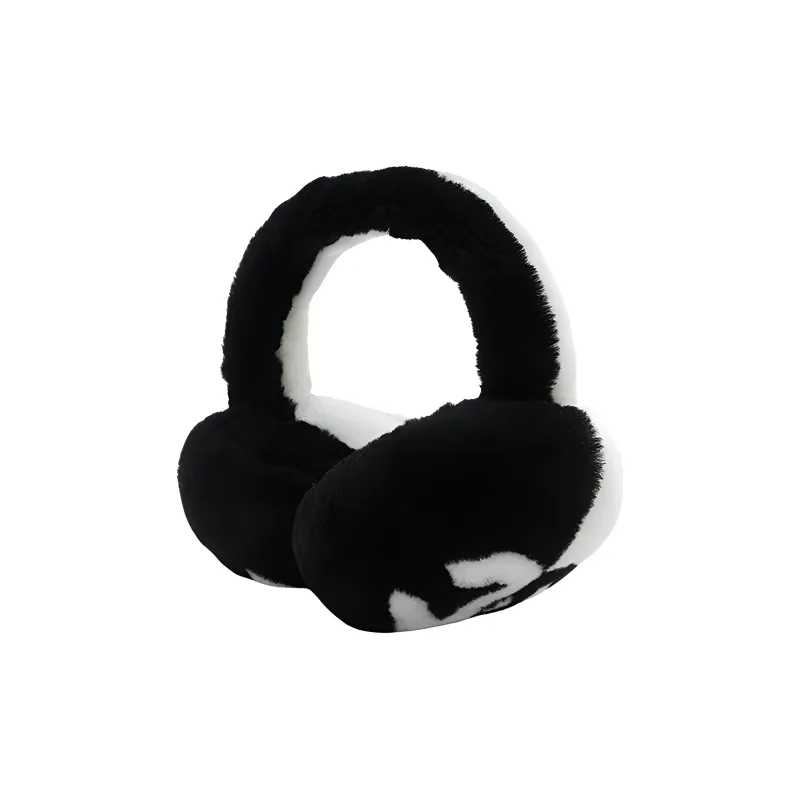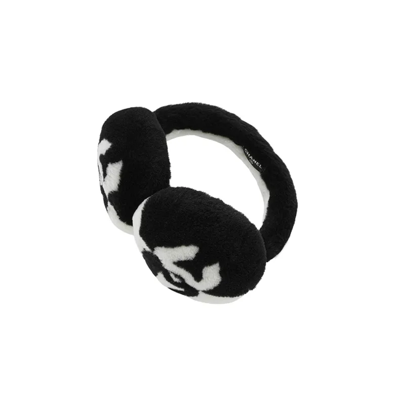 CHANEL Двойная сторона овчина и овечья кожа Наушники-подвески Унисекс Черный Белый