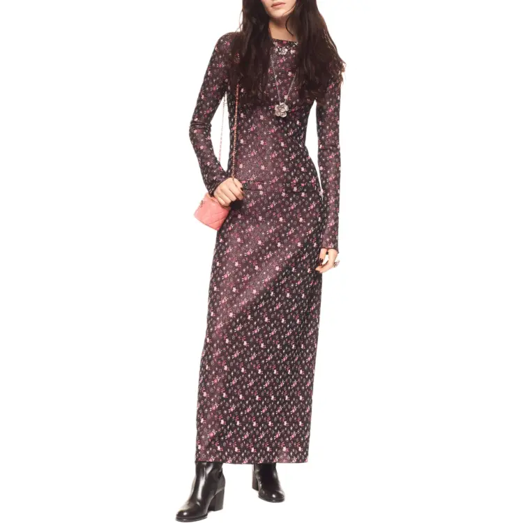 CHANEL FW24 Длинное платье с длинными рукавами женское многоцветное