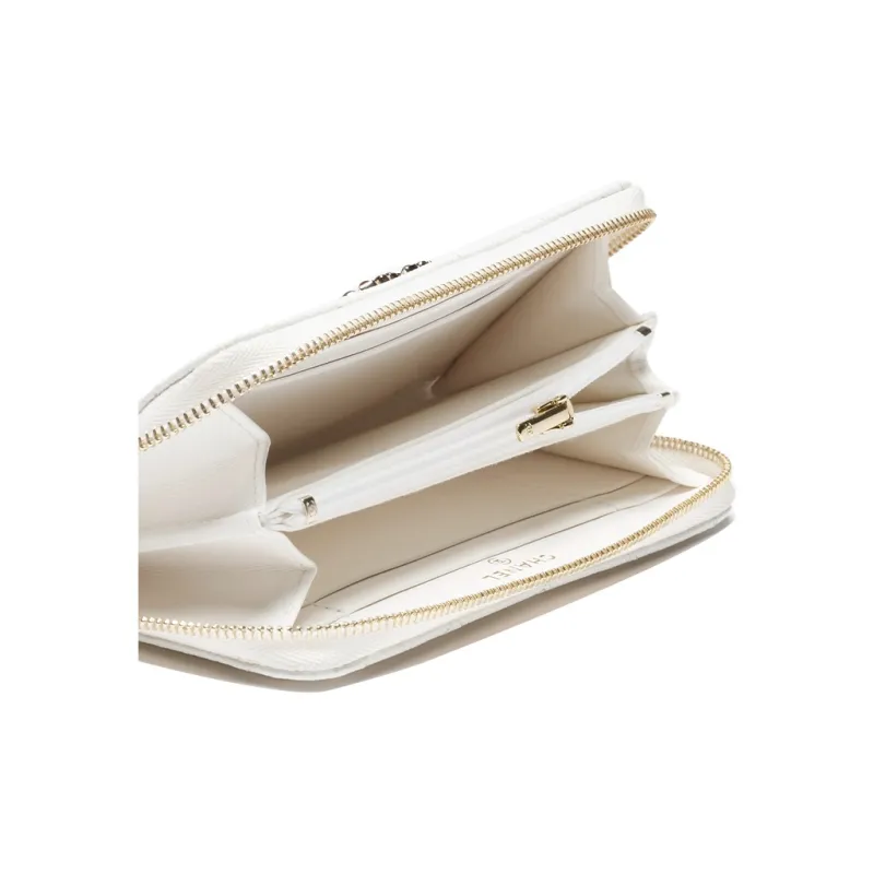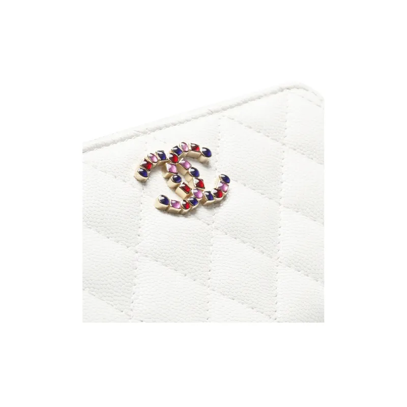 CHANEL С рельефным тиснением Телячья кожа Держатель для карт кошелек Женский Белый