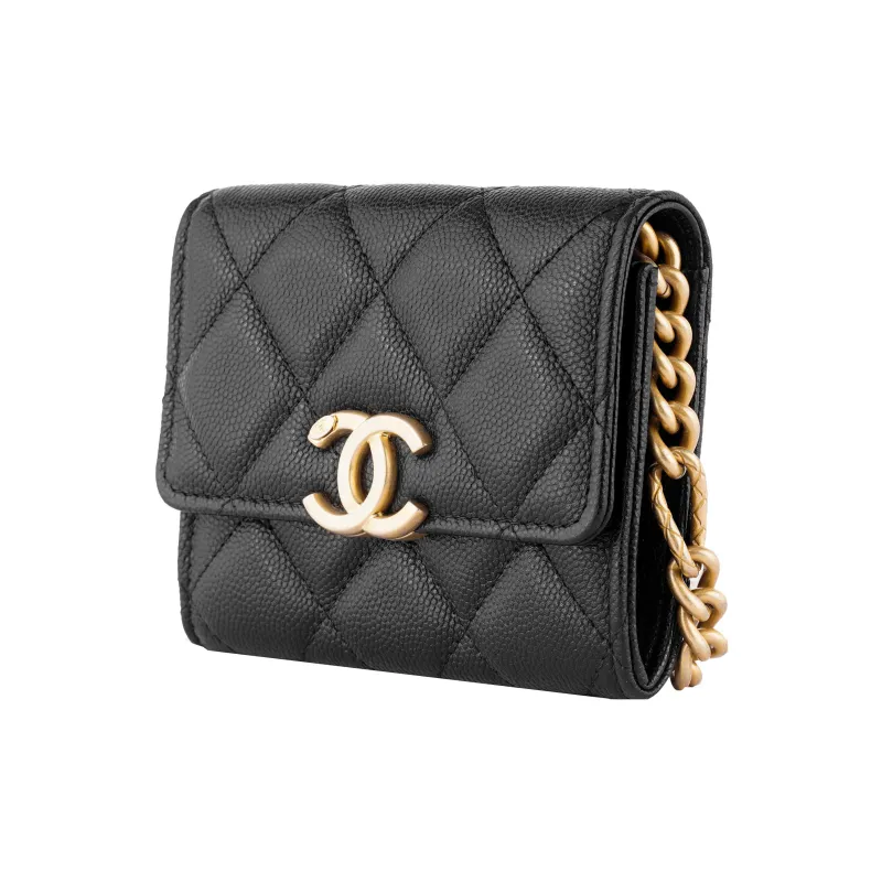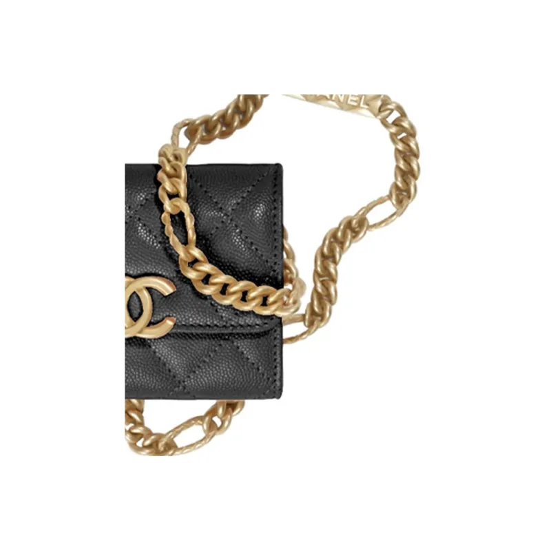 CHANEL С рельефом Тисненый Телячья кожа Монета Кошелек Клатч Сумка через плечо Женская Черная
