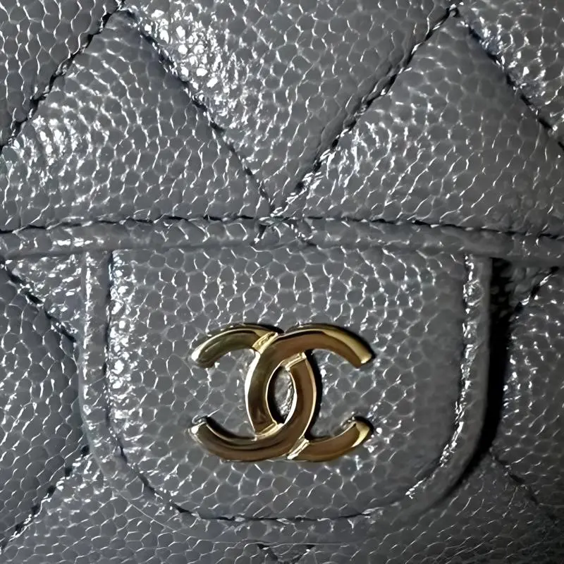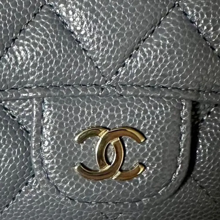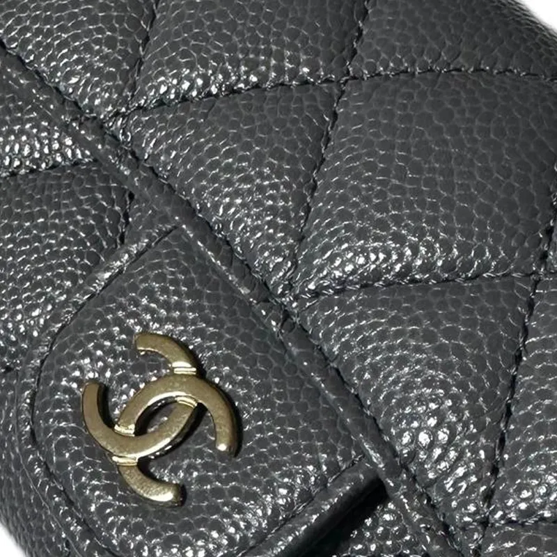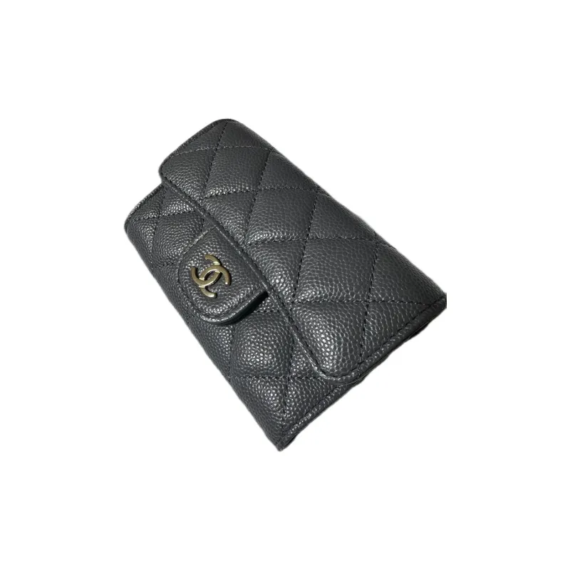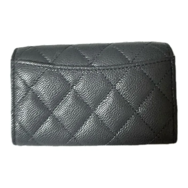 CHANEL С рельефом Тисненый Телячья кожа Мелочь Кошелек Кошелек Держатель для карт Женский Темно-серый