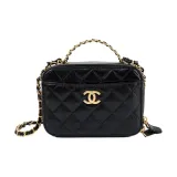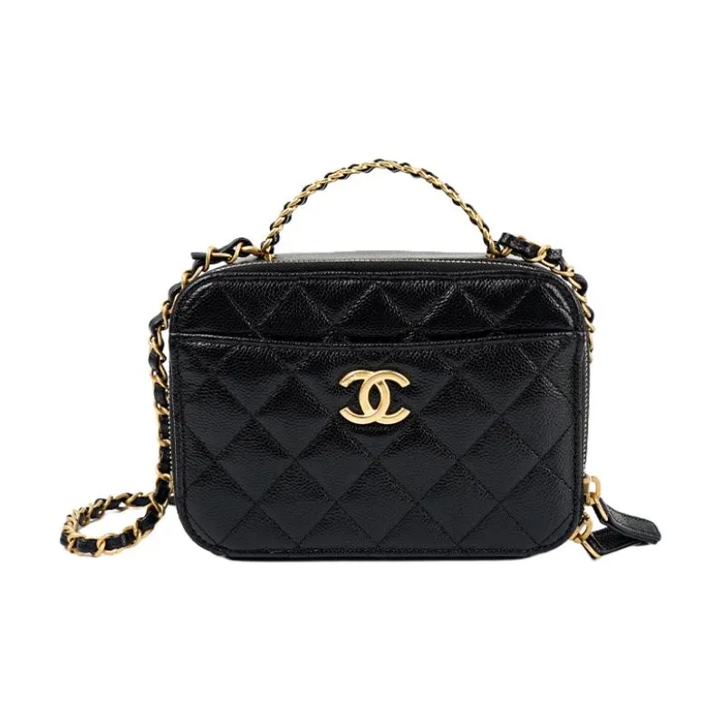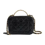 CHANEL С рельефом Тисненый Коровья кожа Коробка Сумка, Сумка для макияжа, Сумка на одно плечо, Маленькая женская, Черная
