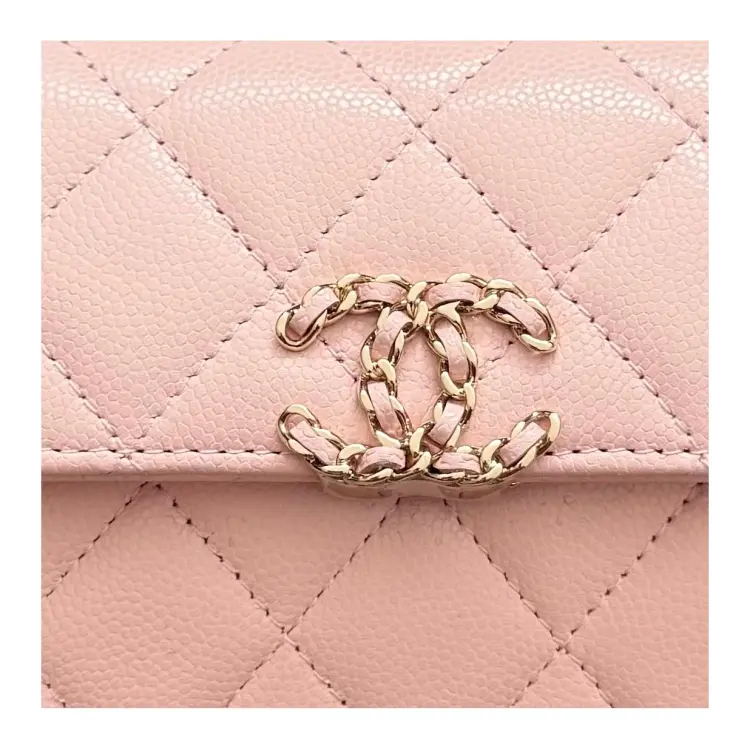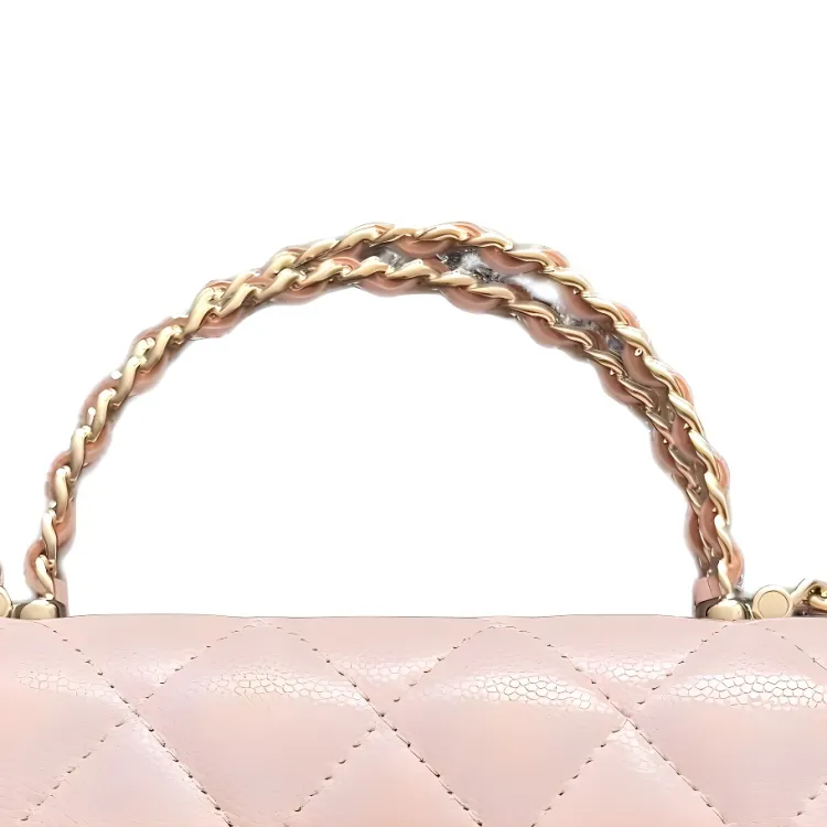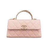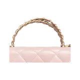 CHANEL С рельефом Тисненый Блестящий Телячья кожа Сумка через плечо Сумка Женская Светло-розовая
