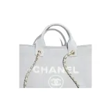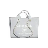 CHANEL Ткань Коровья Кожа Пляжная Сумка Тоут Сумка Сумка для покупок Сумка через плечо Сумка среднего размера Женская