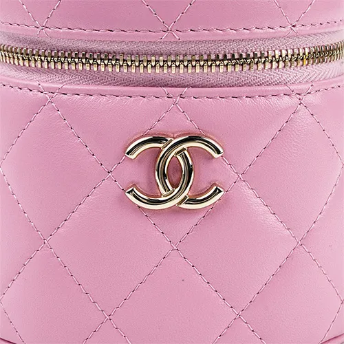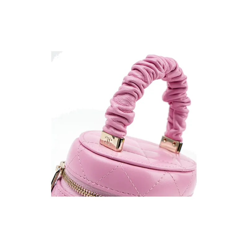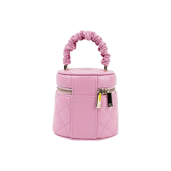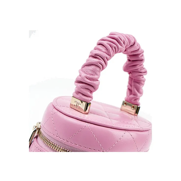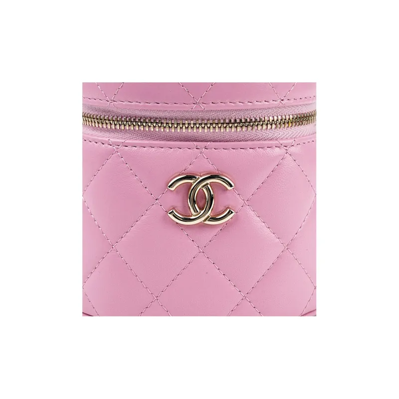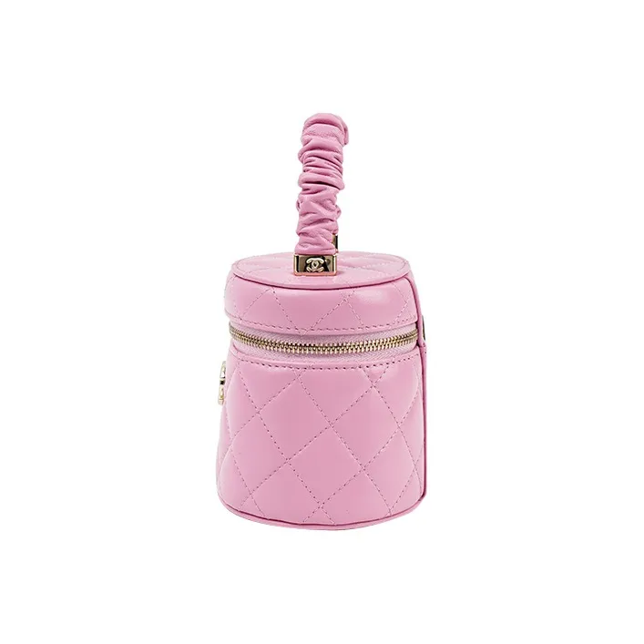 CHANEL Lambskin Цилиндрическая Сумка Сумка Косметичка Маленькая Женская Розовая