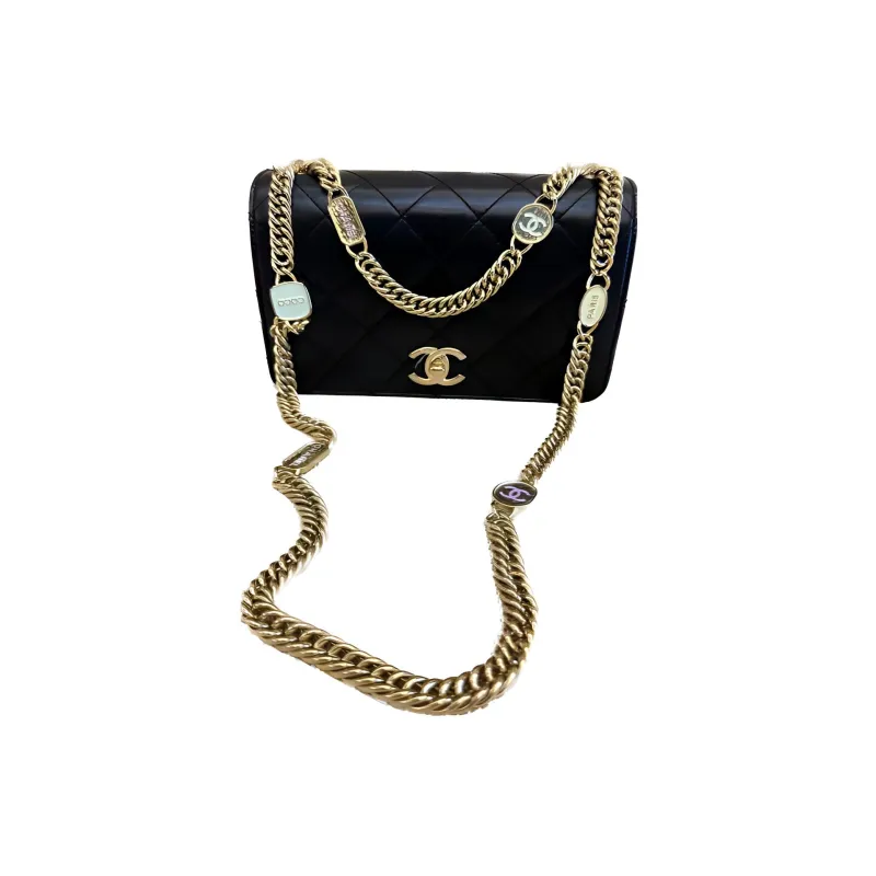 CHANEL Lambskin Flap Bag Crossbody Bag Shoulder Bag Mini Women's Black