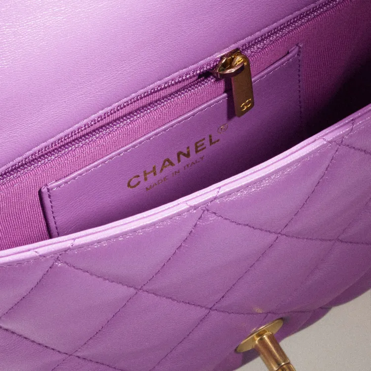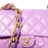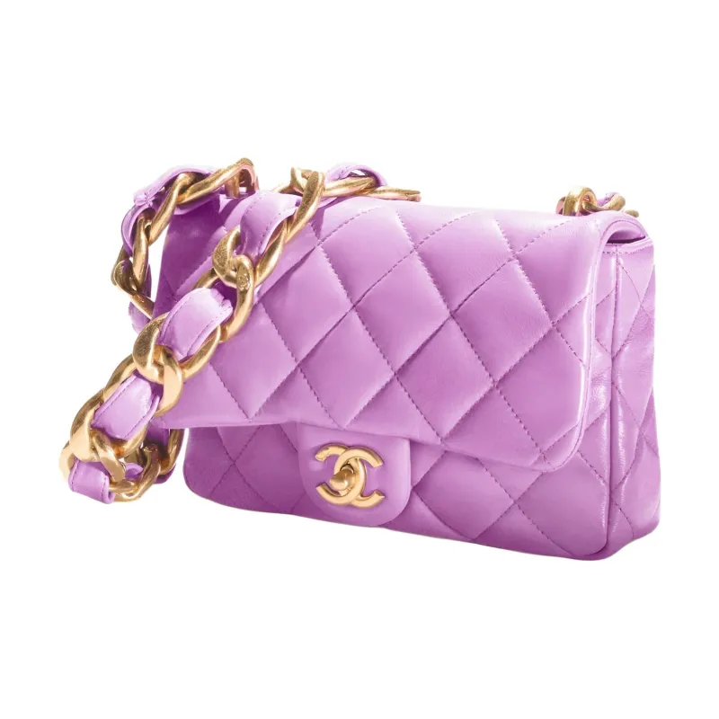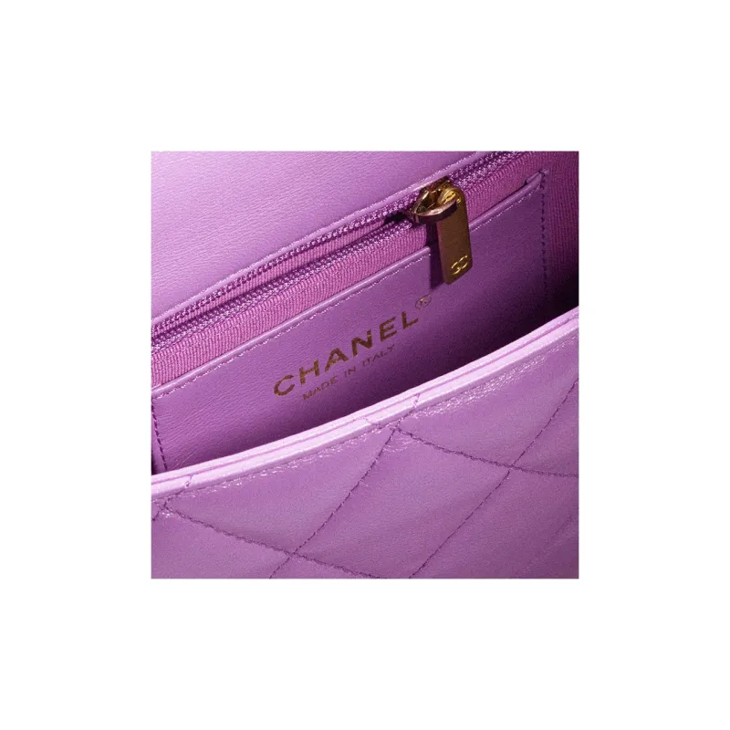 CHANEL Lambskin Flap Bag Crossbody Bag Shoulder Bag Small Women's Purple