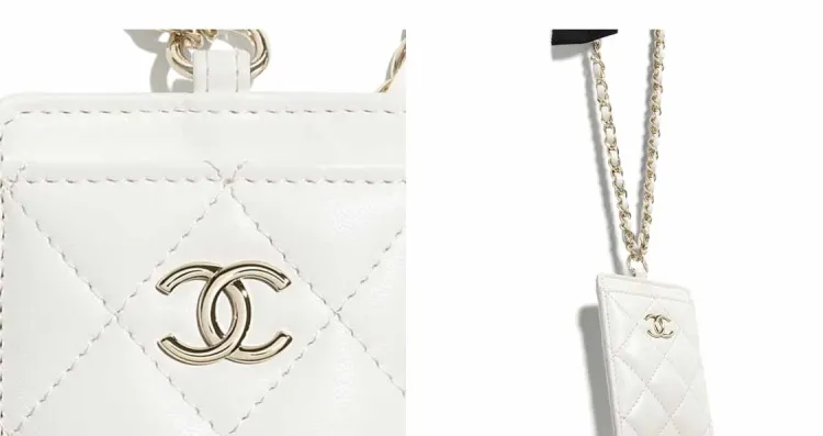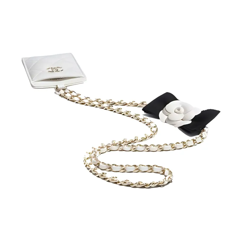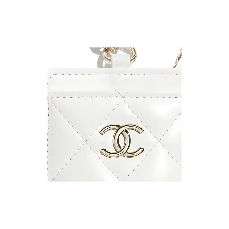 CHANEL Lambskin Necklace Pouch Women's White