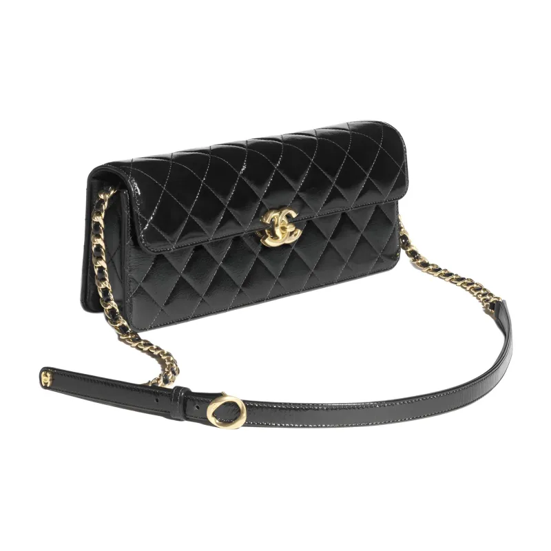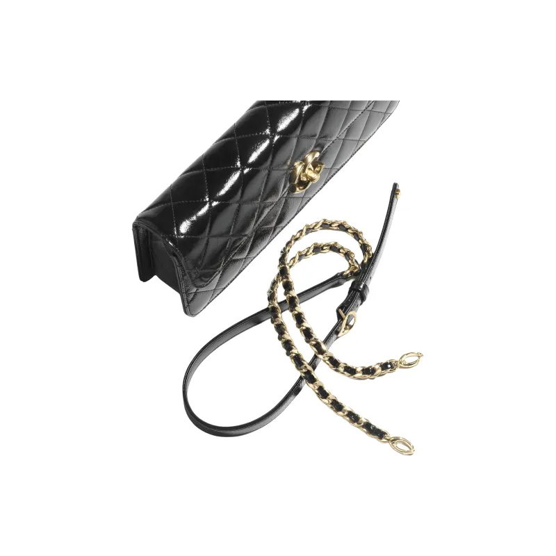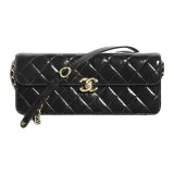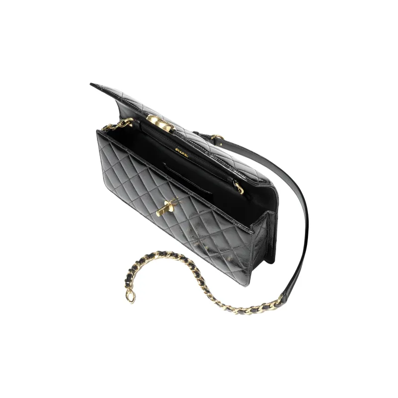 CHANEL Lambskin Лакокожий Плечевая Сумка для ношения в руке Большая Женская Черная