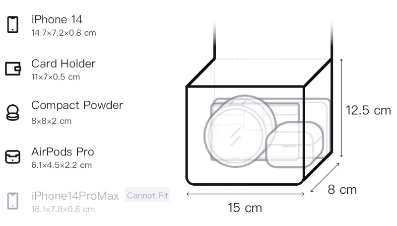 Длина (размер в длину): 15 см, Ширина: 8 см, Длина корпуса: 12,5 см