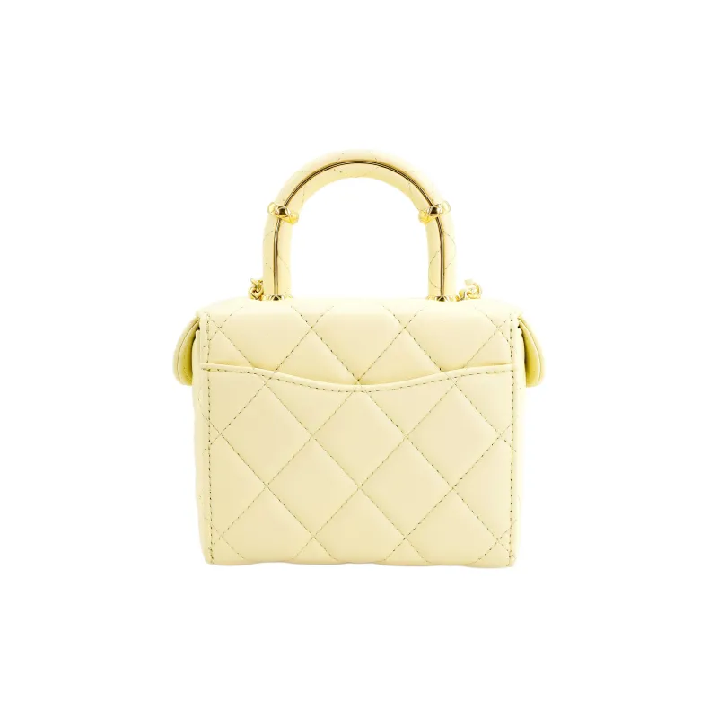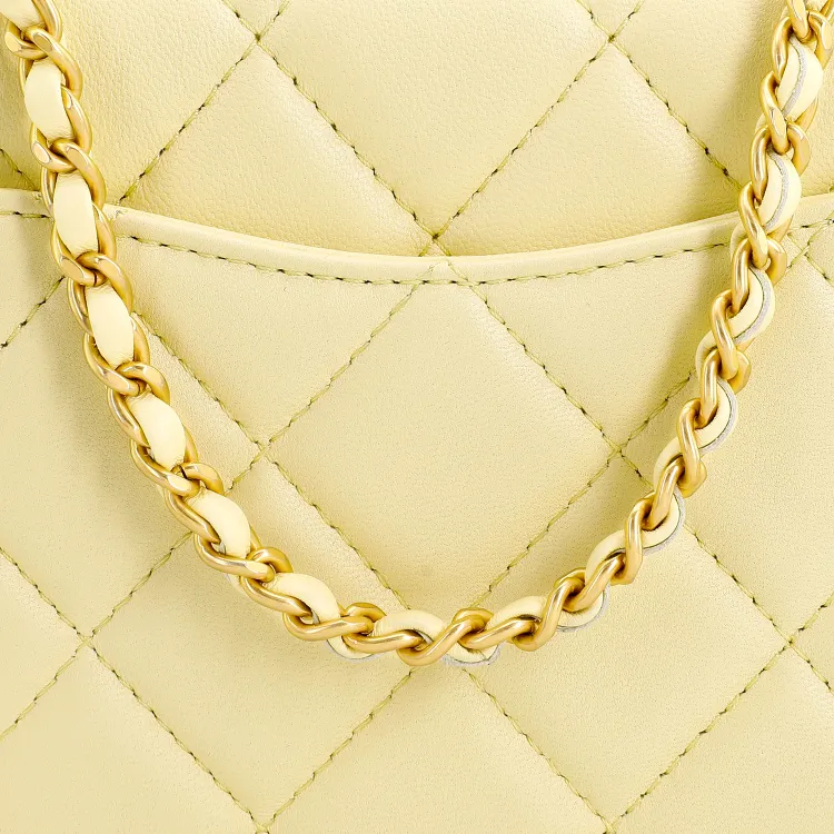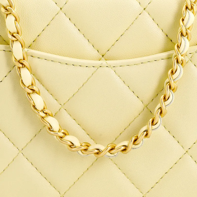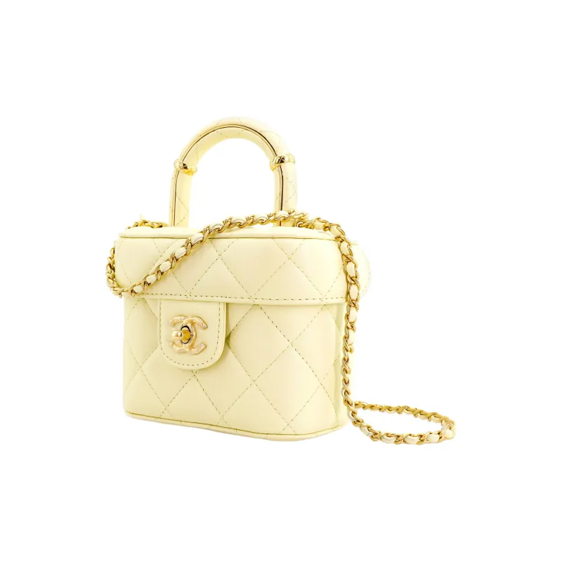 CHANEL Lambskin Portable Single Shoulder Crossbody Makeup Bag Small Women's Light Yellow CHANEL Lambskin Портативный Один Плечо Через плечо Косметичка Маленькая Женская Светло-желтая