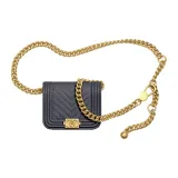 CHANEL LEBOY Рельефная Телячья Кожа Бананка, Сумка через плечо Женская Темно-Серый