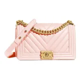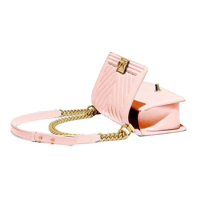CHANEL LEBOY Крупнозернистая текстура Телячья кожа Сумка через плечо Средняя Женская Оранжевая Розовая